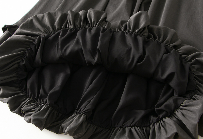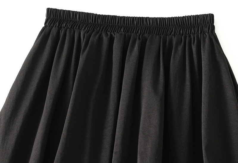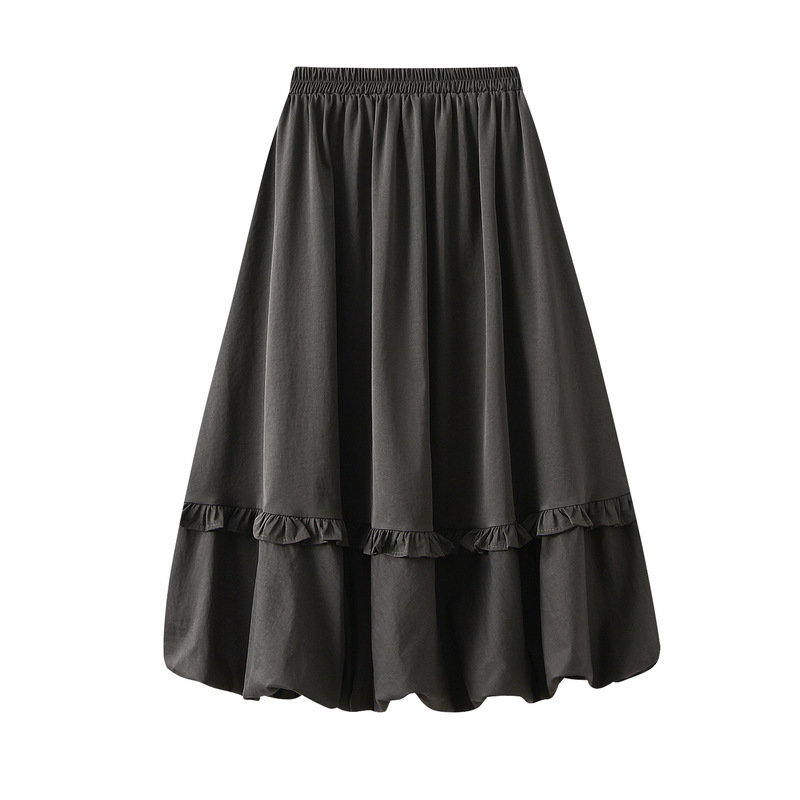 Elastic Waist Wooden Ear Pleated Bud Mid-Length Dress Women Autumn Cover Slimming All Matching Skirt