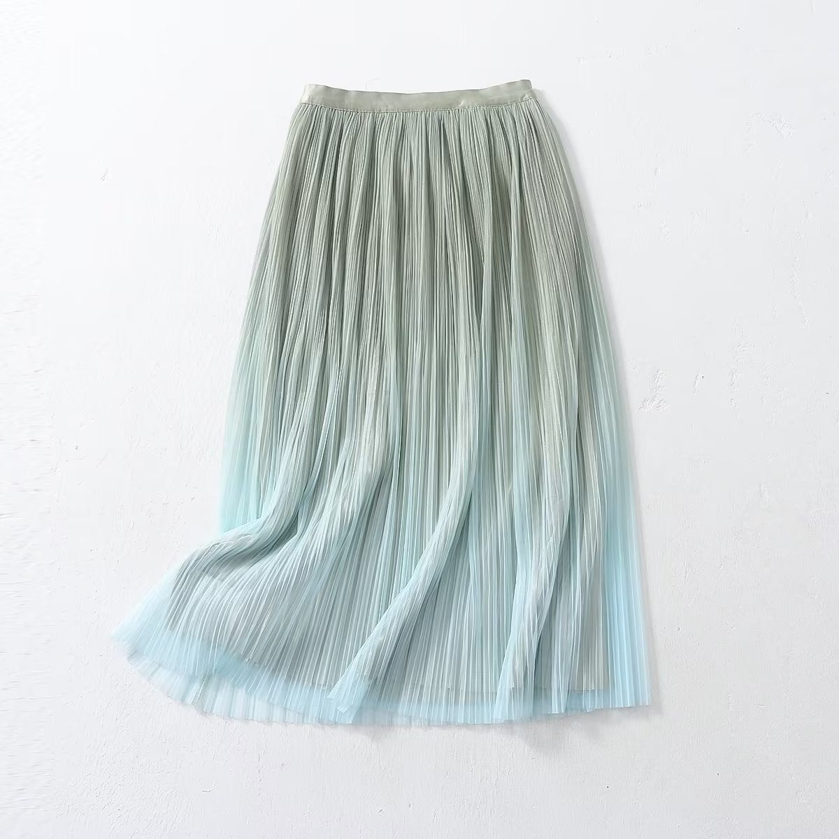 Elegant Graceful Gradient Color Pleated Skirt Spring Summer Light Luxury High Waist A line Skirt