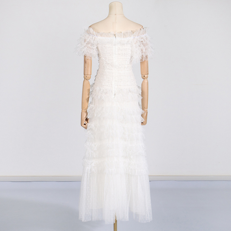 Elegant Waist Tight Lace Maxi Dress Summer High Grade Waist Tight Slimming Dress Women