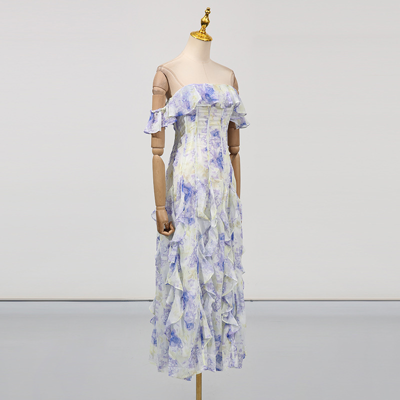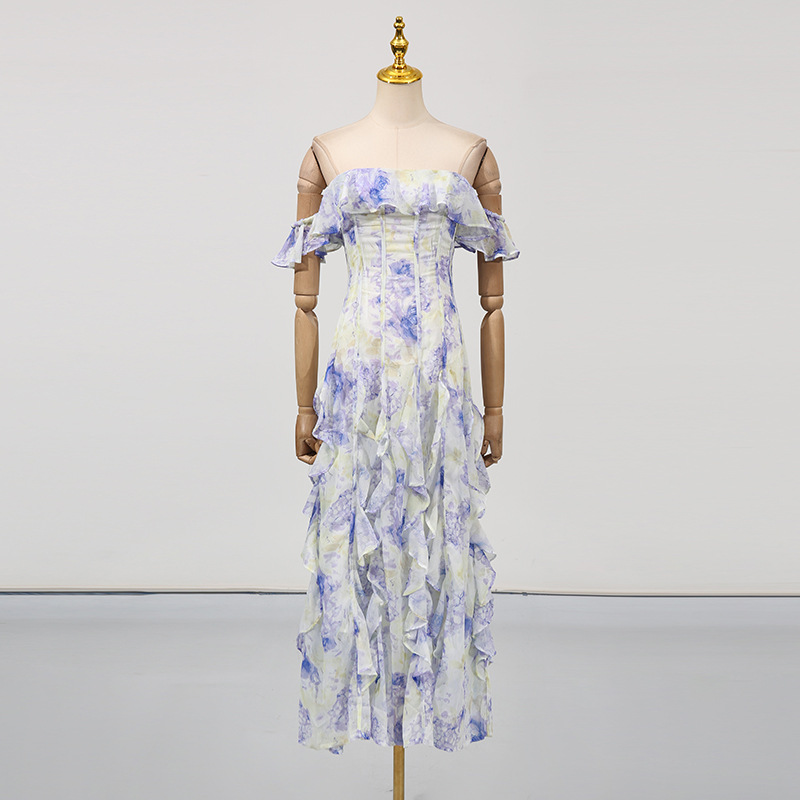 Fairy Floral God Tube Top Waist Controlled Large Hem Formal Dress Women Summer Printed Ruffled Dress Women