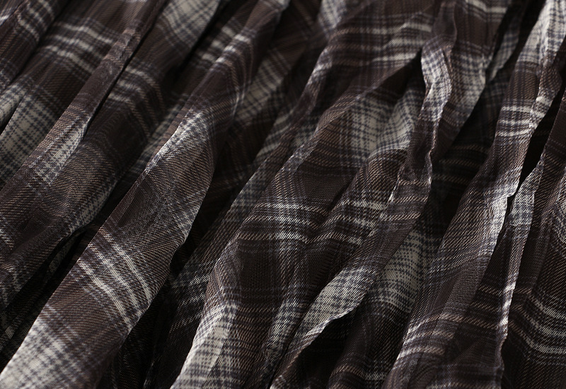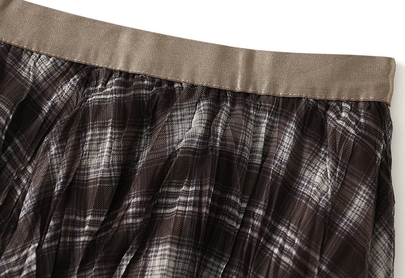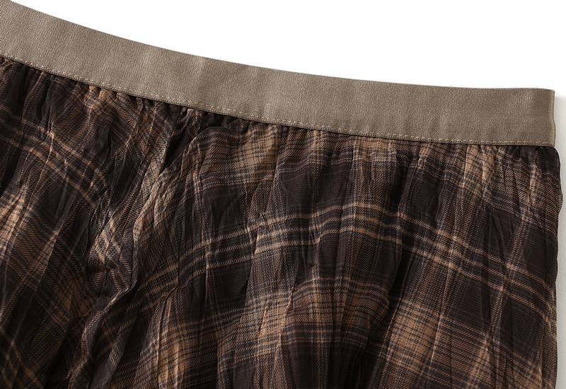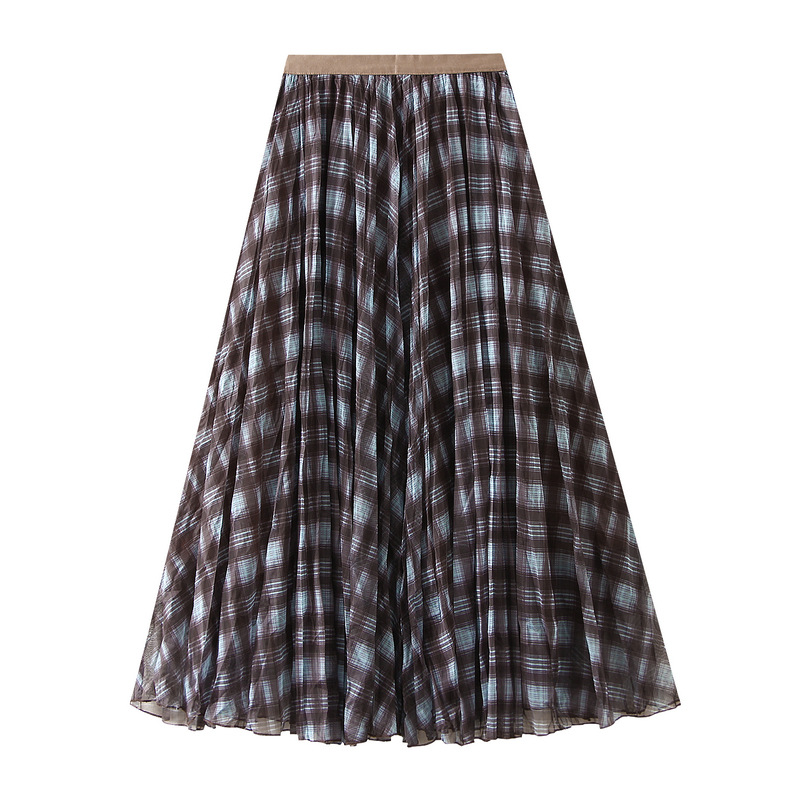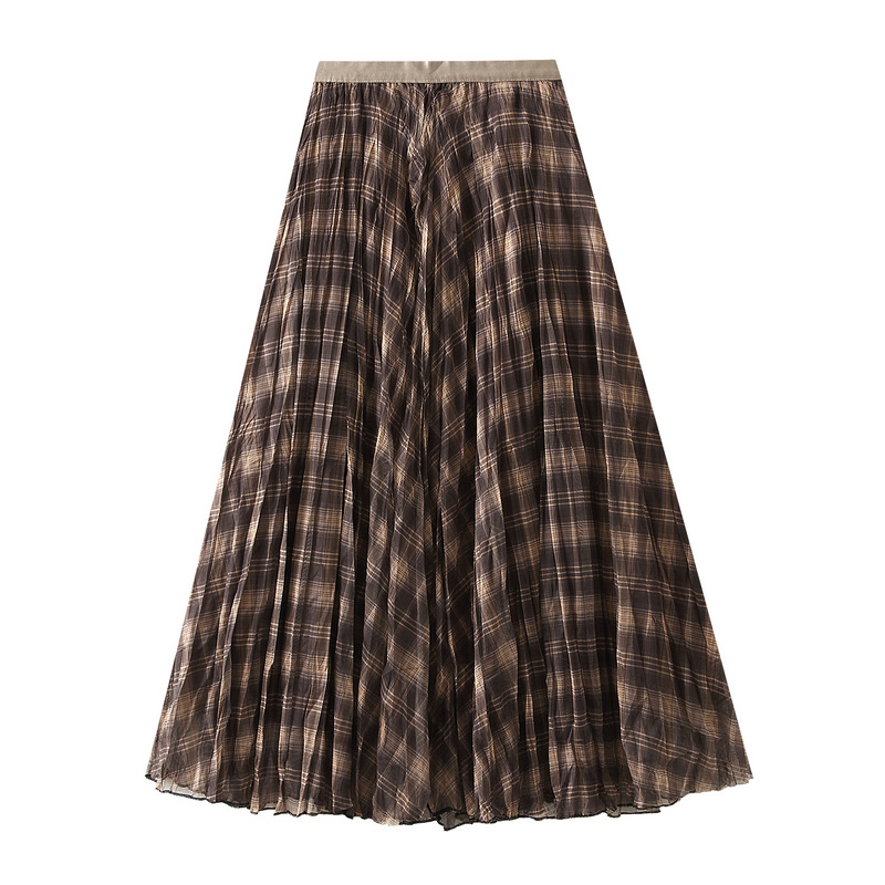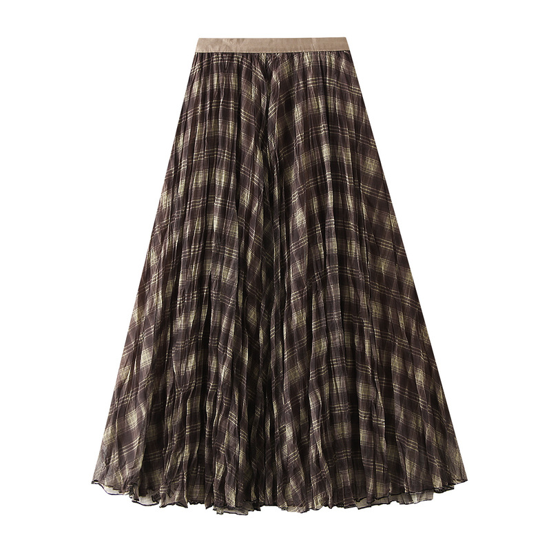 Fall Brown Plaid Skirt Women High Grade A line Large Hem High Waist Slimming Mid Length Skirt