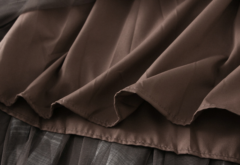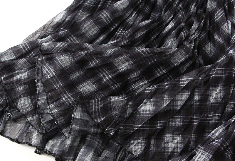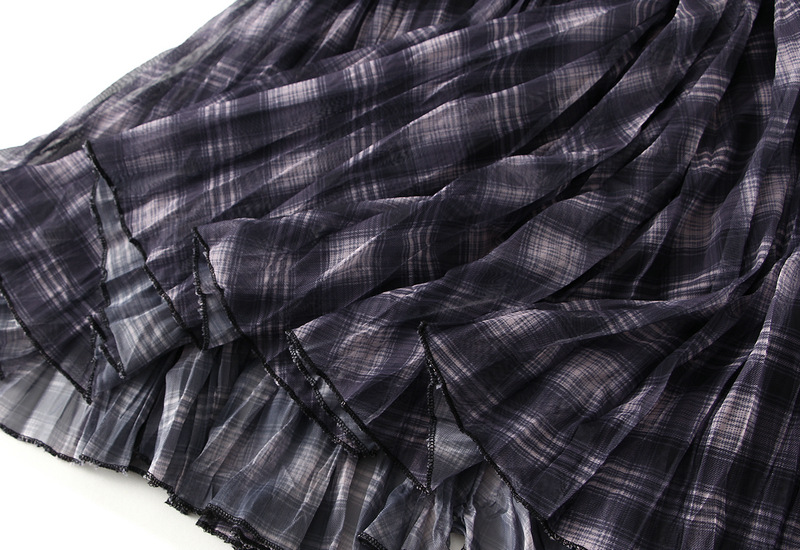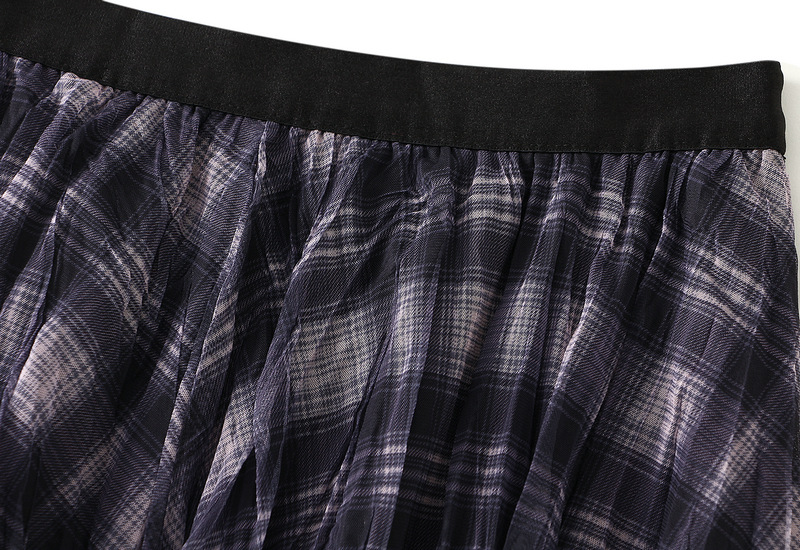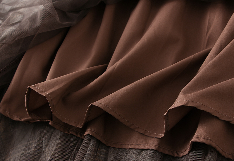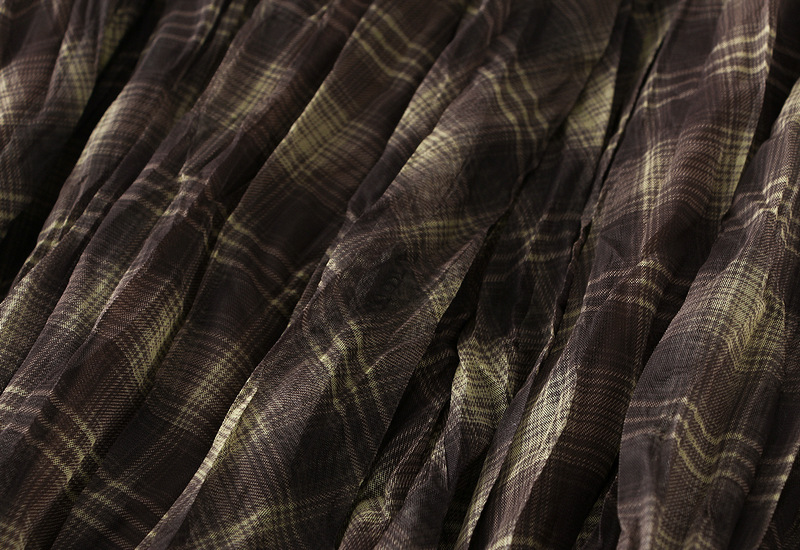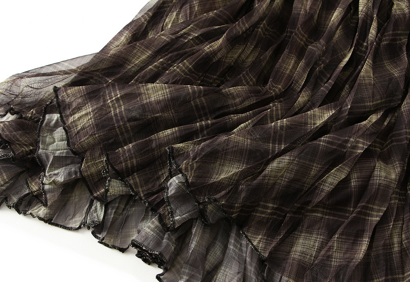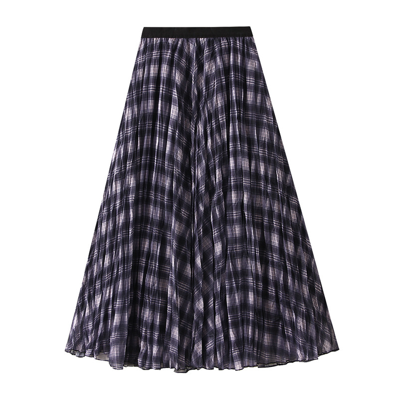 Fall Brown Plaid Skirt Women High Grade A line Large Hem High Waist Slimming Mid Length Skirt