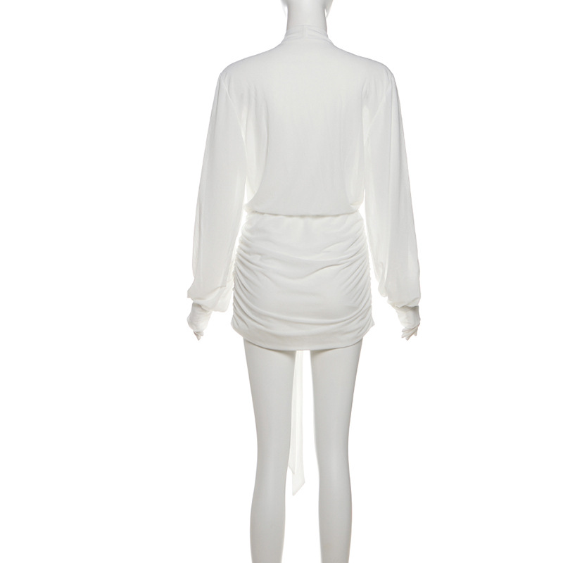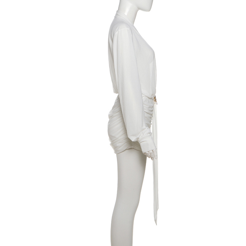 Fall Women Clothing Elegant Slim Fit Sexy Deep V Plunge neck Ruffle Hip Long Sleeved Shirt Dress