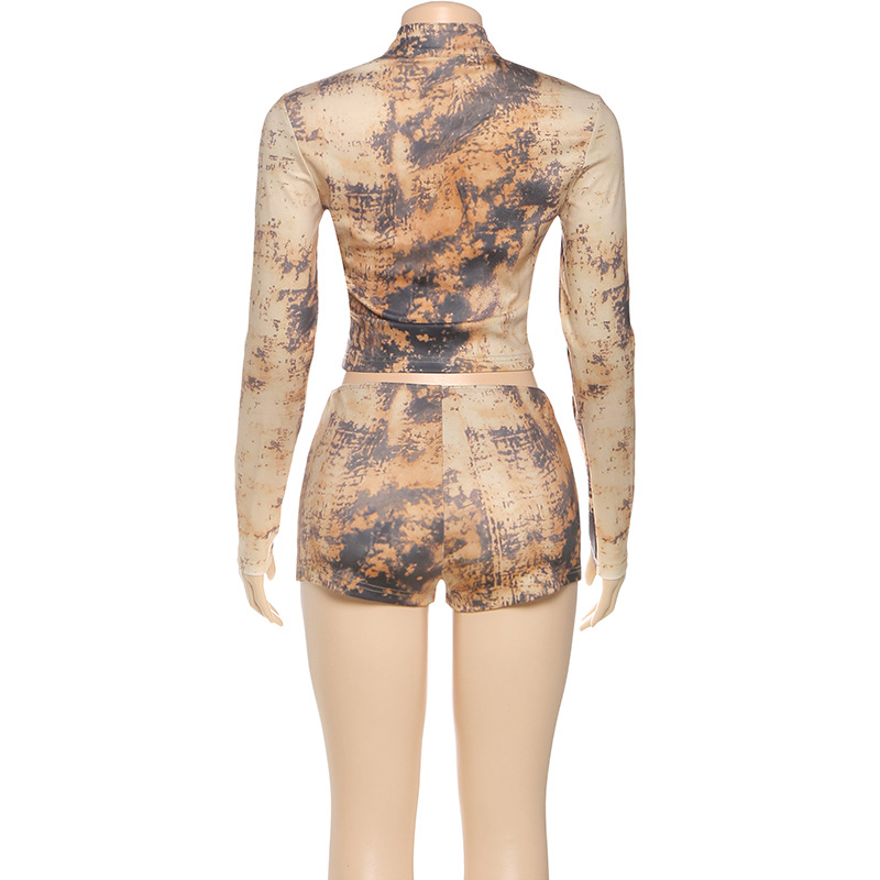 Fall Women Clothing Sexy Cropped Top Hip Shorts Printing Set Women