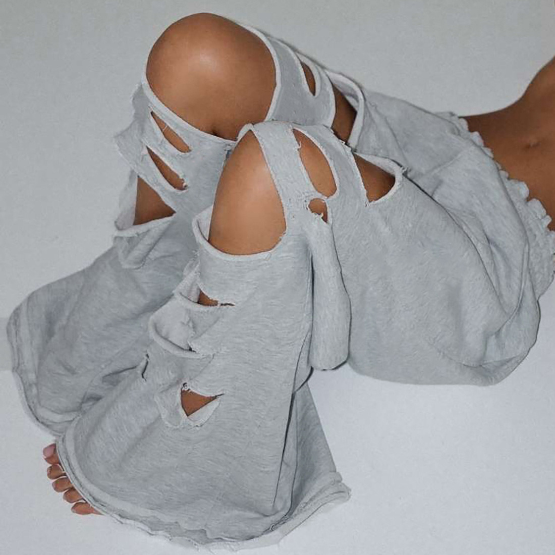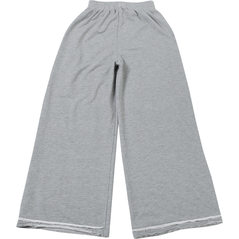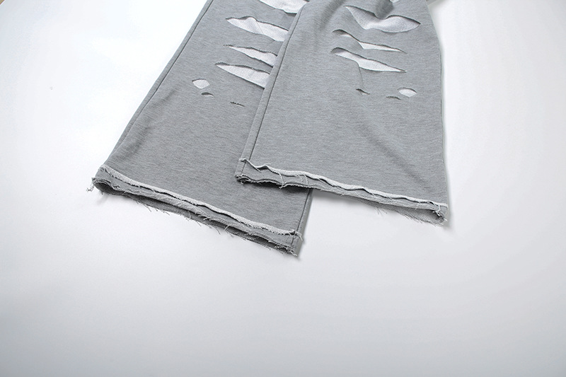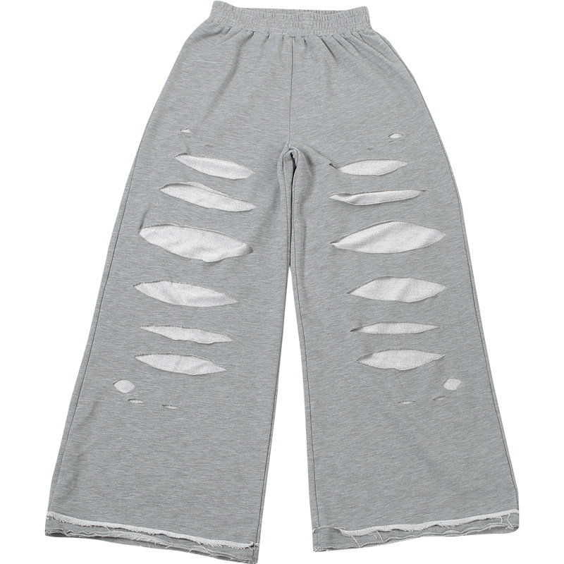 Fall Women Clothing Solid Color Personalized Ripped Sweatpants Sports Casual High Waist Wide Leg Pants Women