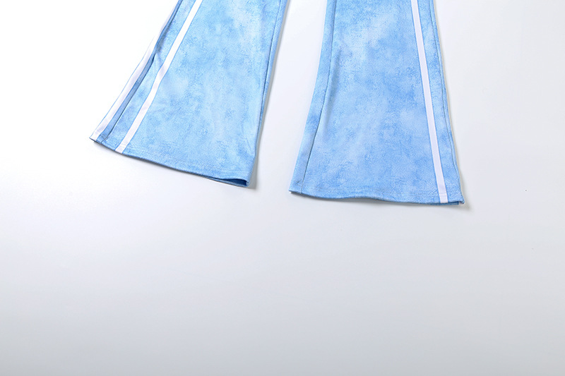 Fall Women Clothing Striped Color Matching Long Sleeved Top Bootcut Pants Casual Two Piece Sets Women