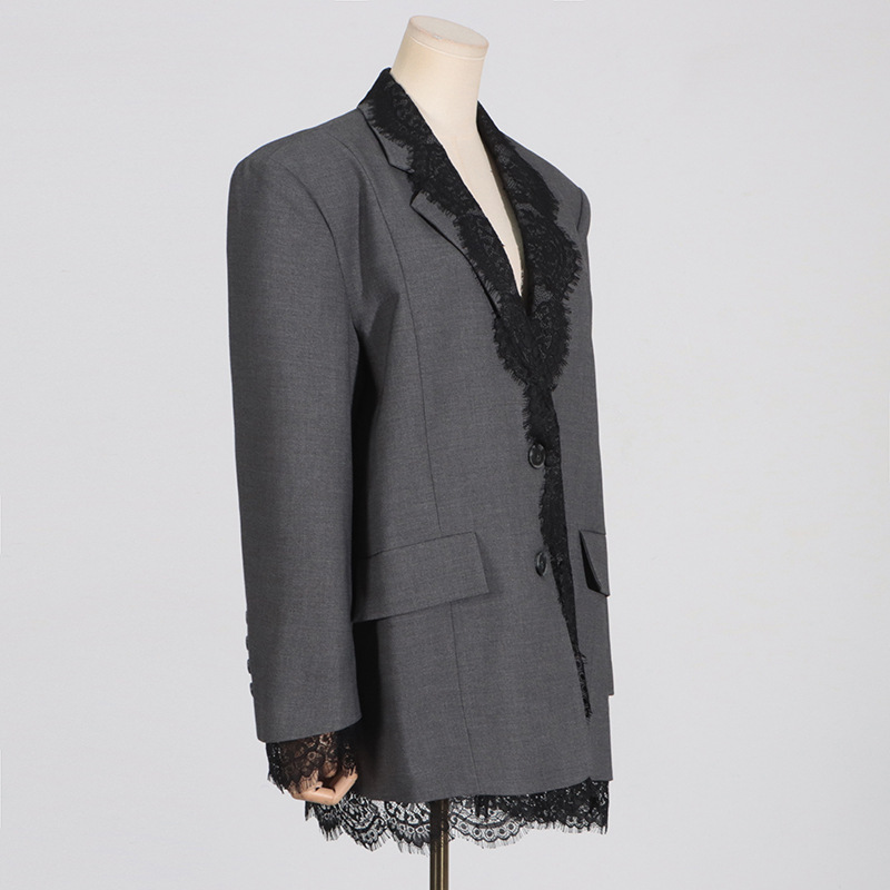 Fashionable Blazer for Women Autumn Lace Stitching Design Long Sleeve Profile Small for Women