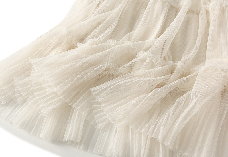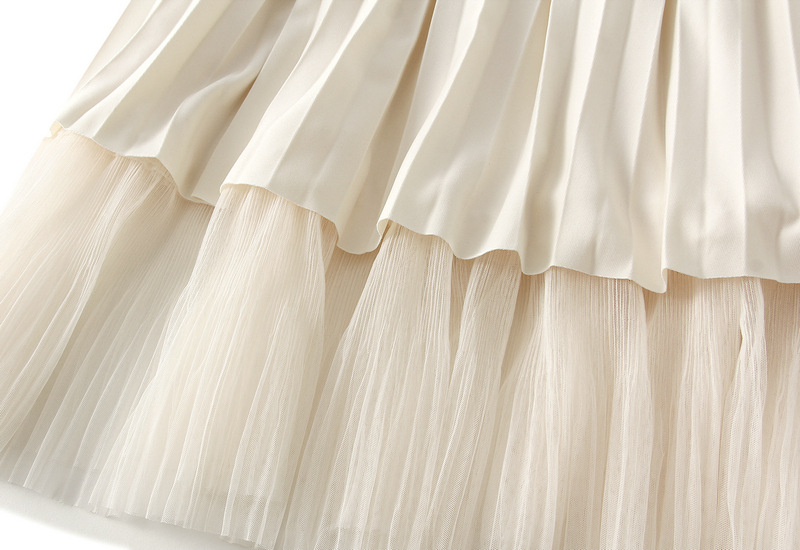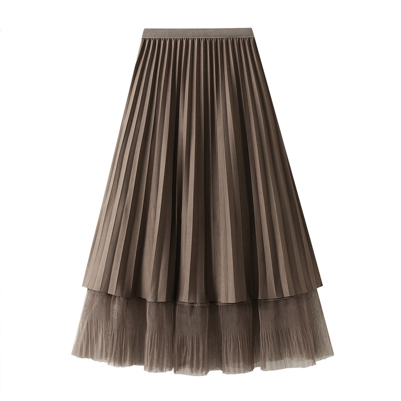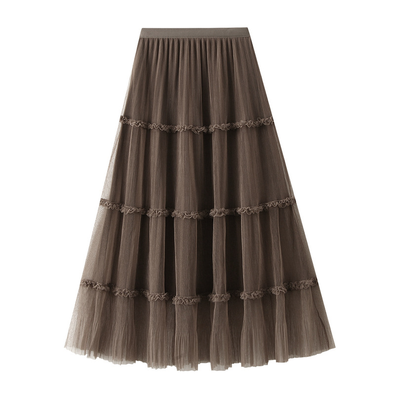Fashionable Temperamental All Match A line Fairy Mesh Skirt for Women Autumn Large Swing Patchwork