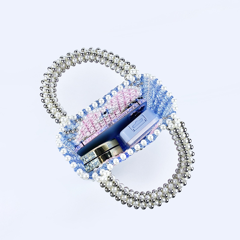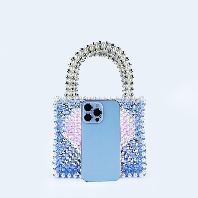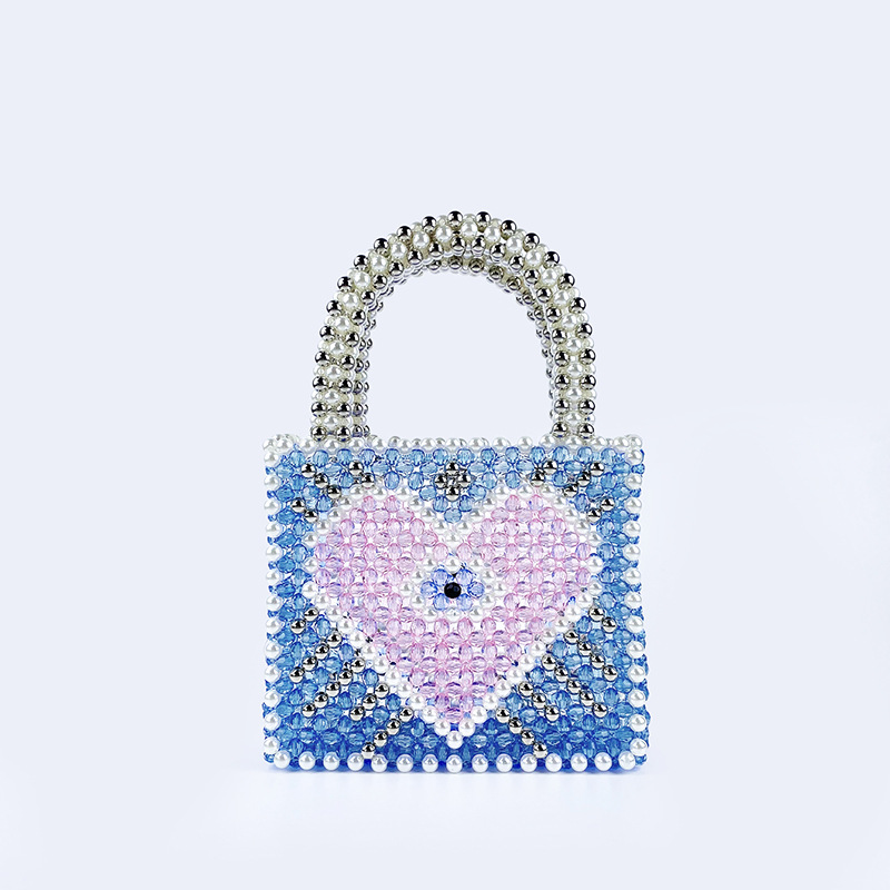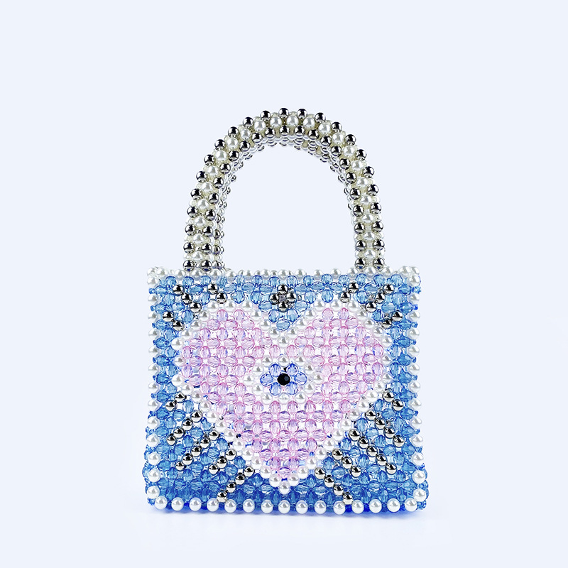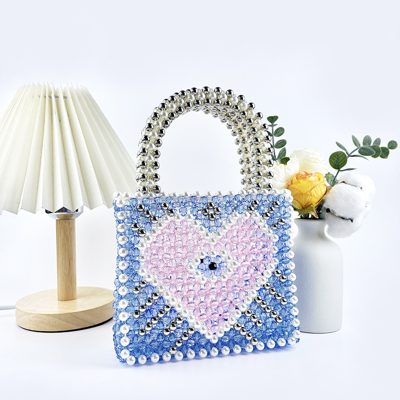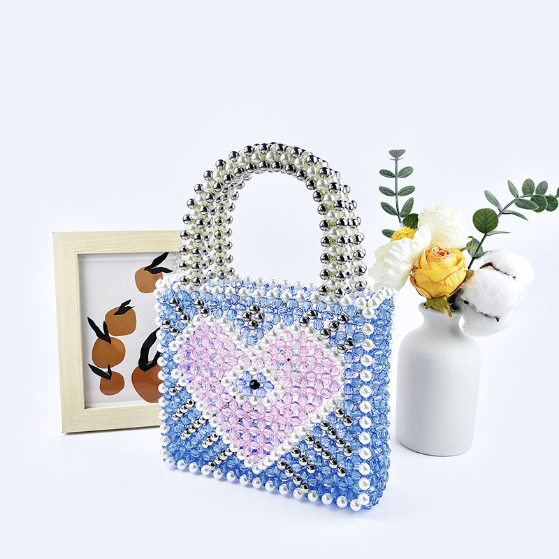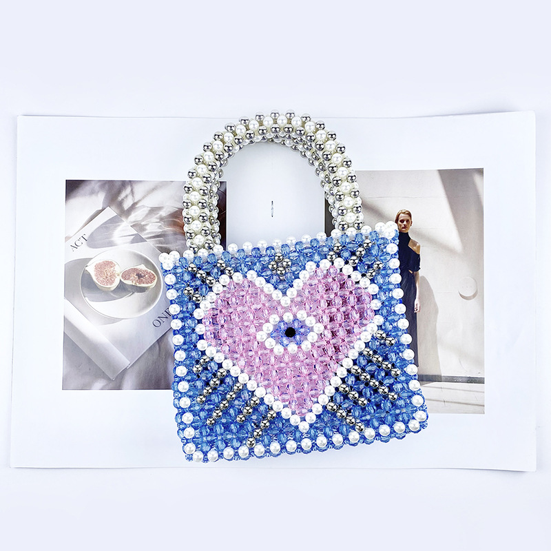 Fengshen Fairy Color Value Blue Heart Shaped Color Matching Shining Large Capacity Homemade Hand Carrying Love Beaded Bag