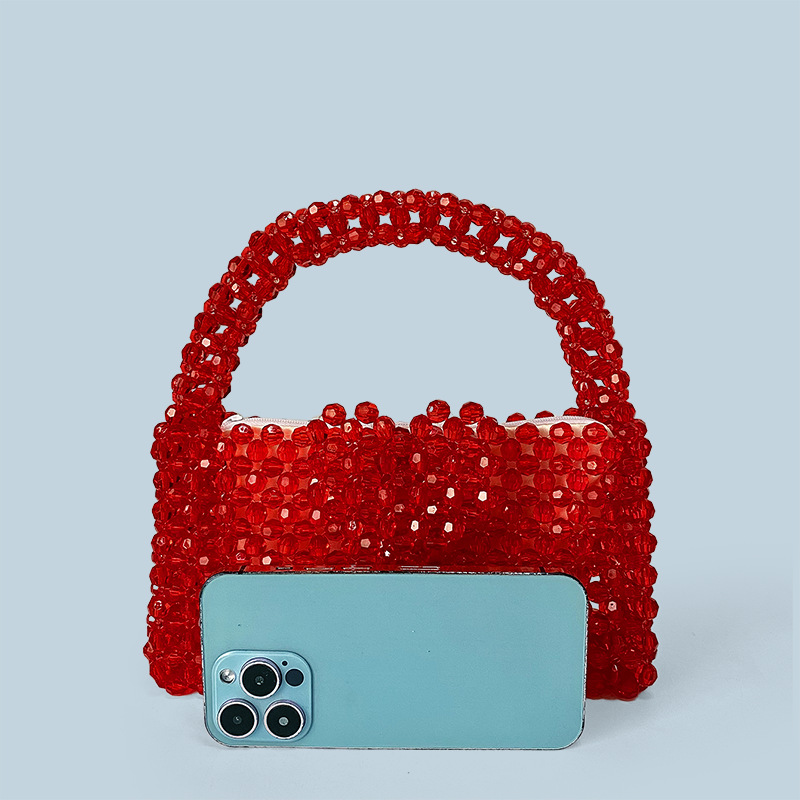 French Casual Socialite High Sense Beaded Weave Love Buckle Portable Acrylic Bag