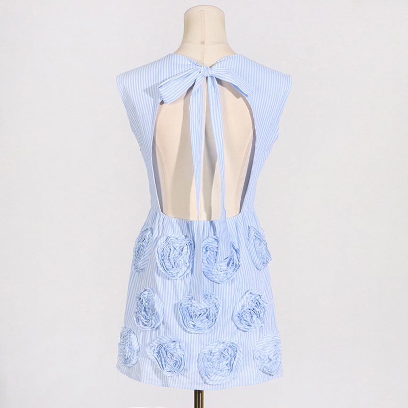 French Elegant Summer High Sense Stitching Floral Backless Design Short Dress Women Summer