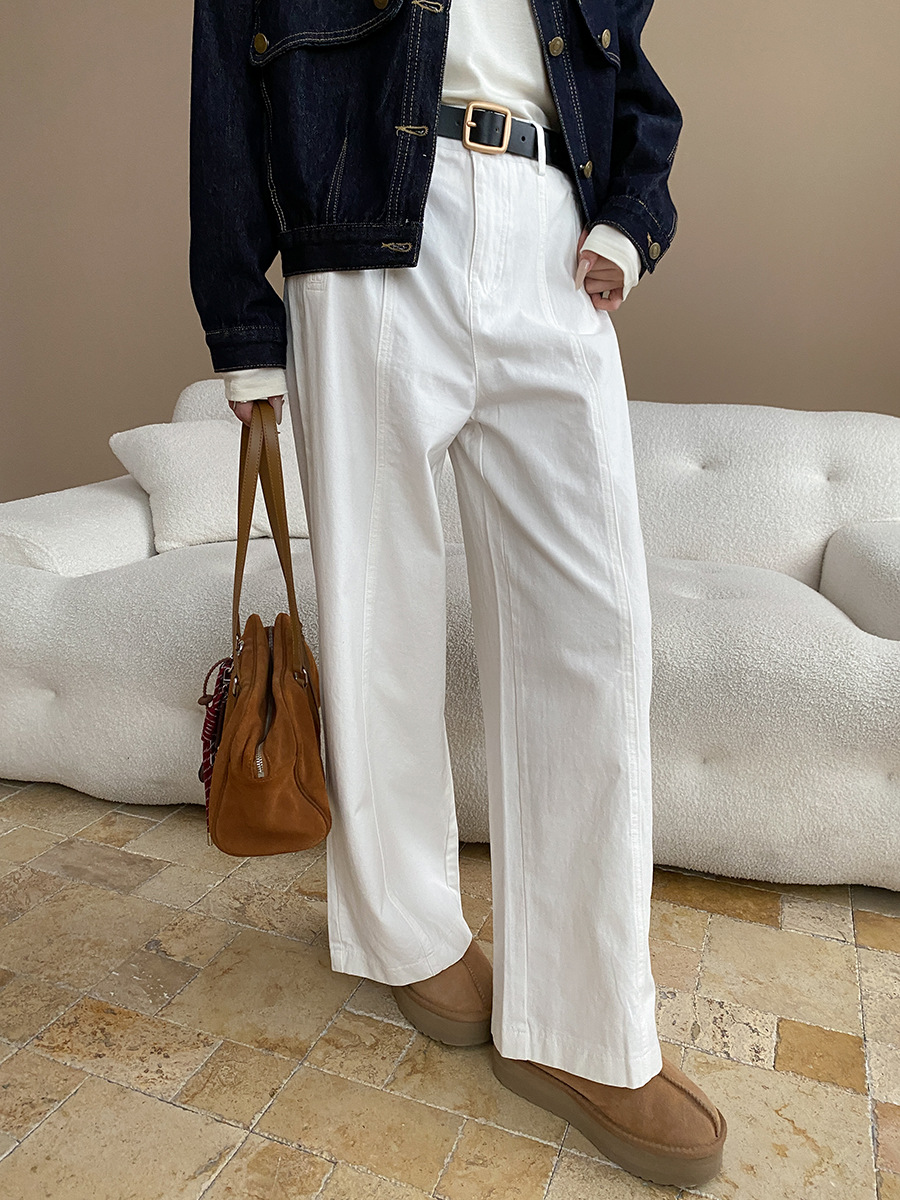 French High Grade Elegant Stand Cutting Line Split High Waist Slimming Straight Wide Leg Jeans
