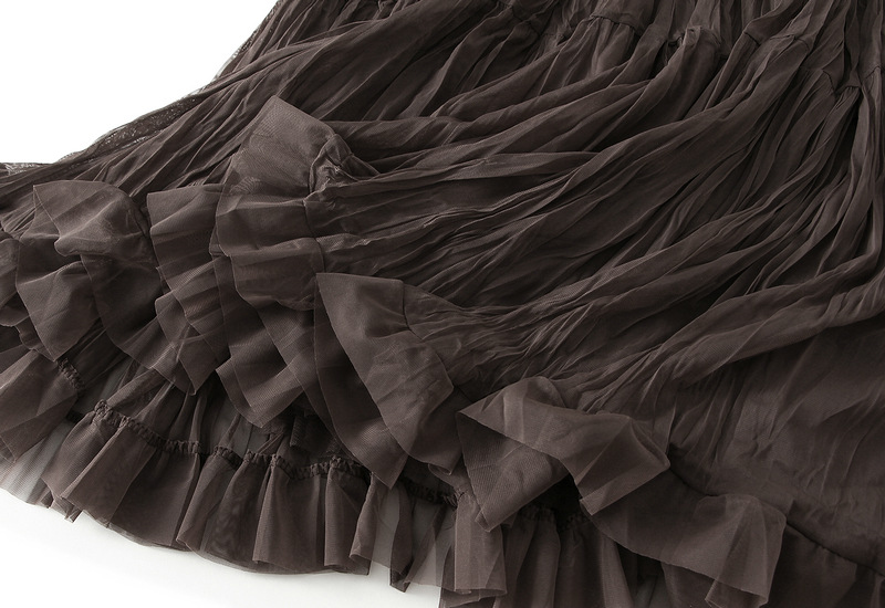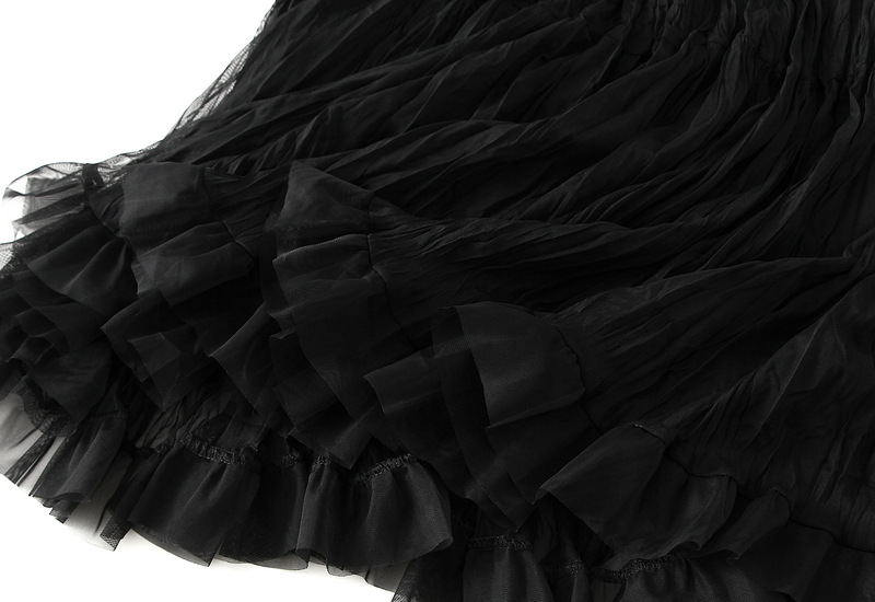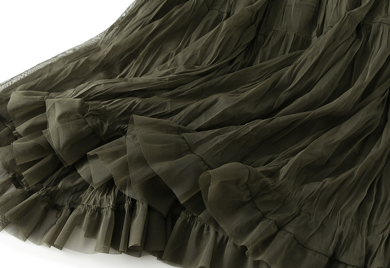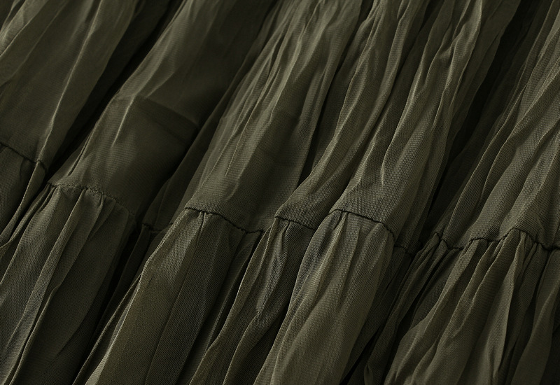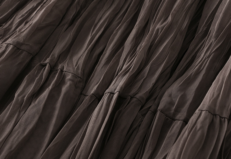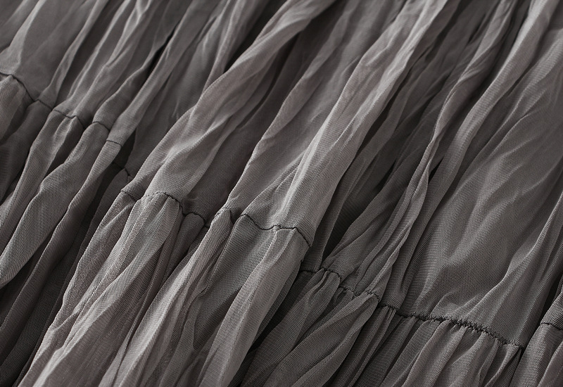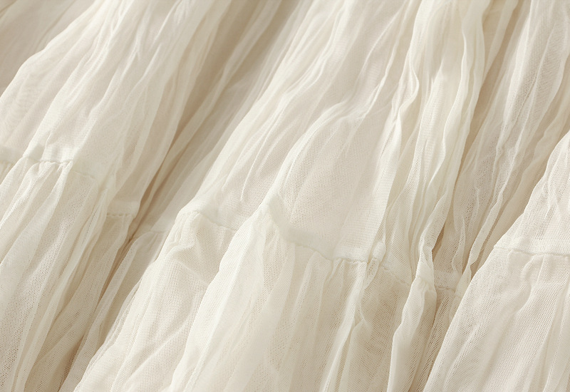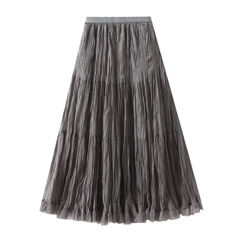 French Mid Length Pleated Mesh Skirt Autumn A line High Waist Fairy Large Swing Skirt for Women