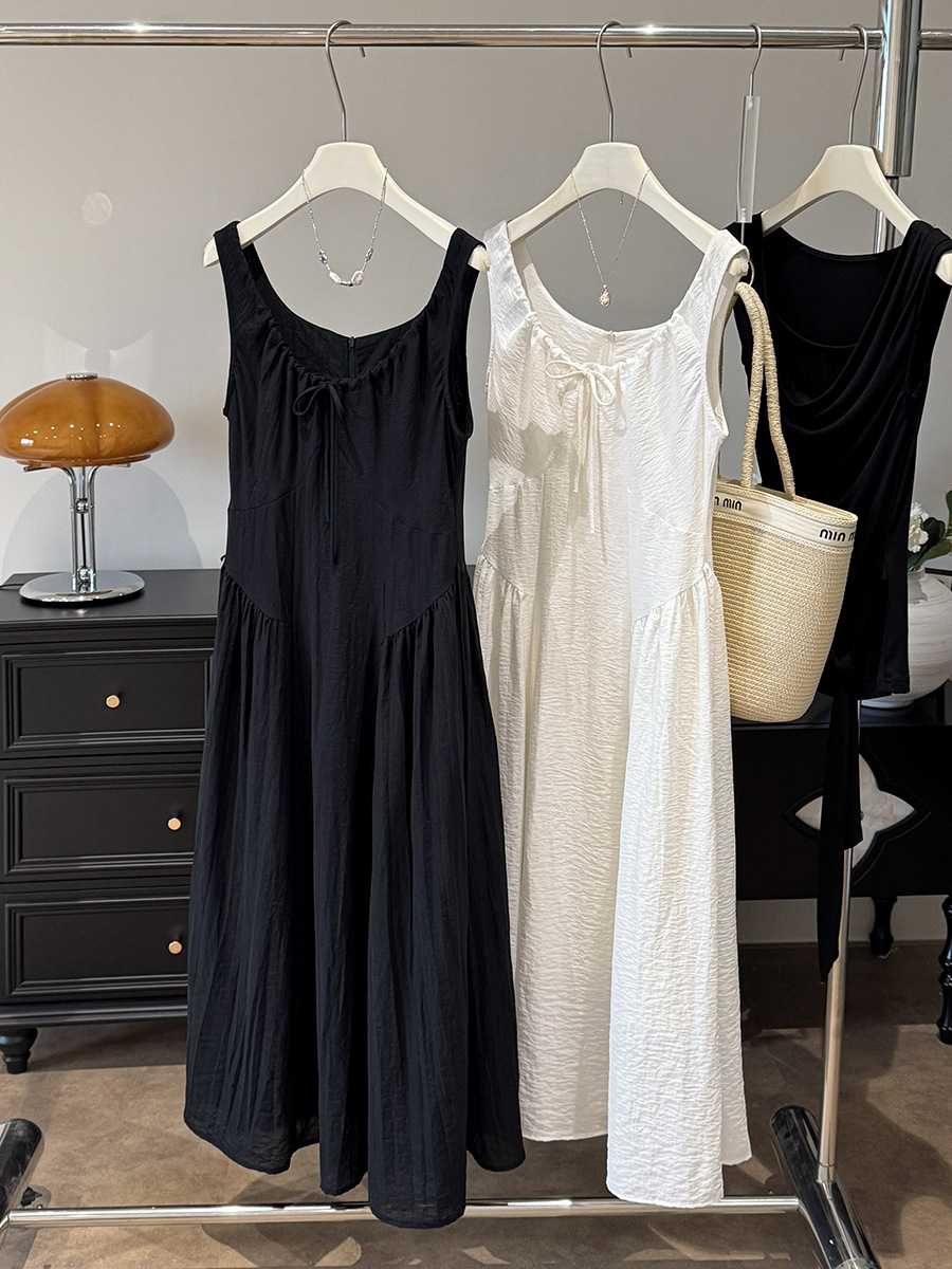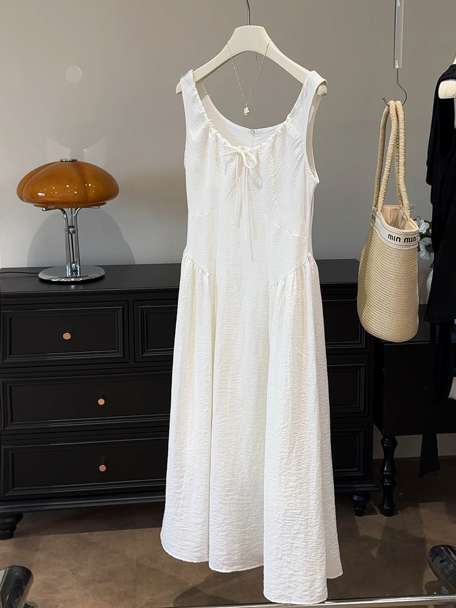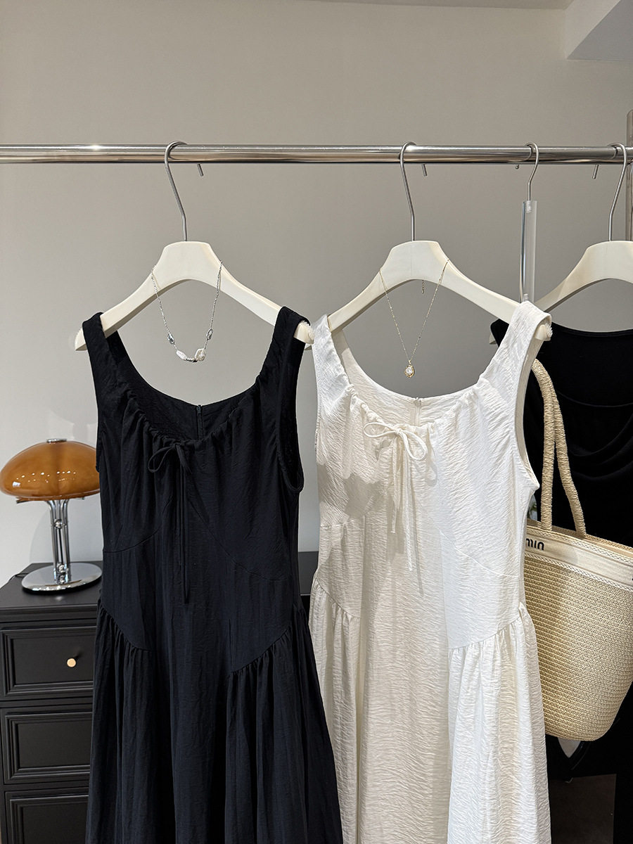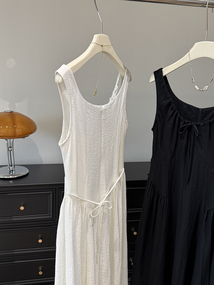 French Vintage Court High Grade Slim Fit Sleeveless U Neck Dress Women Summer Waist Tight Design
