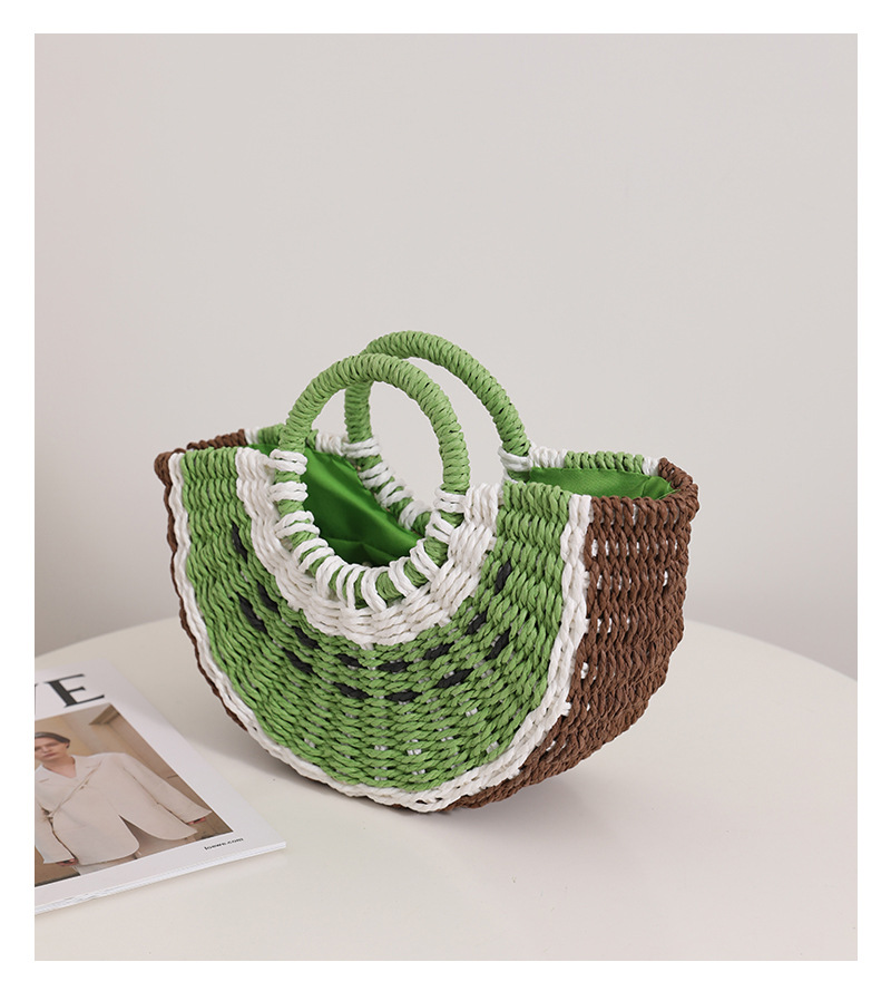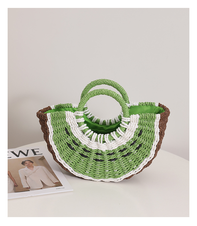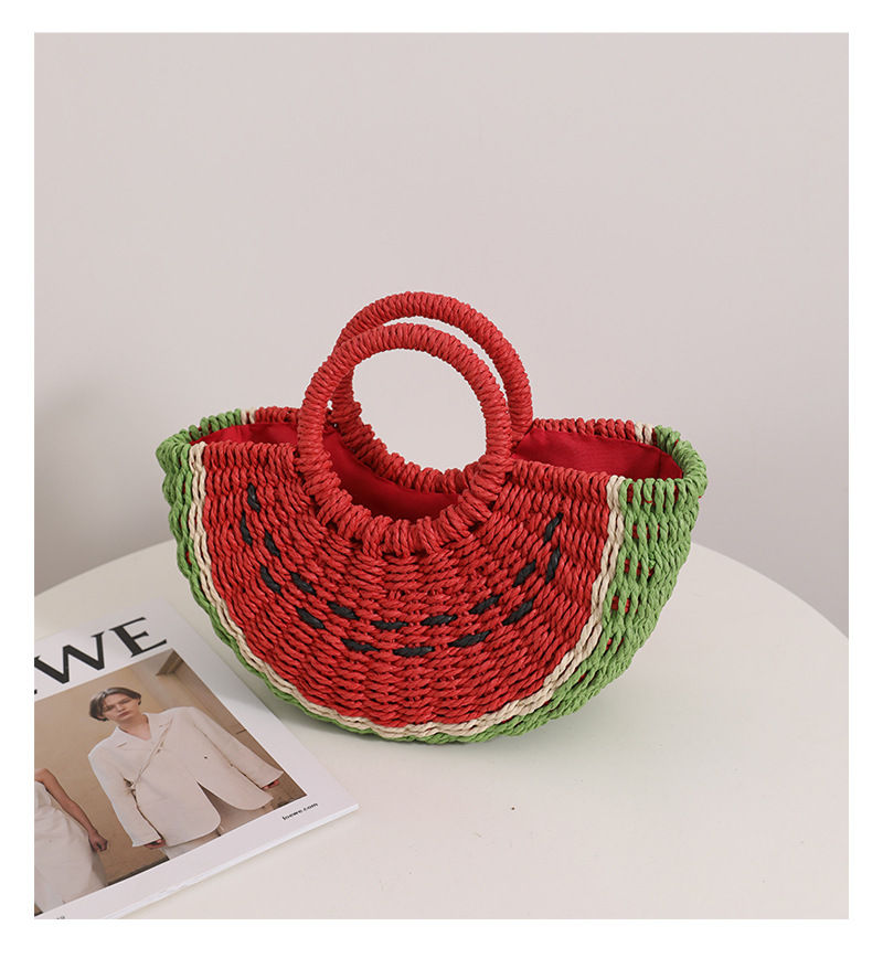 Fresh Candy Colored Watermelon Portable Straw Weaved Bag Cute Fruit Woven Bag Seaside Vacation Beach Bag