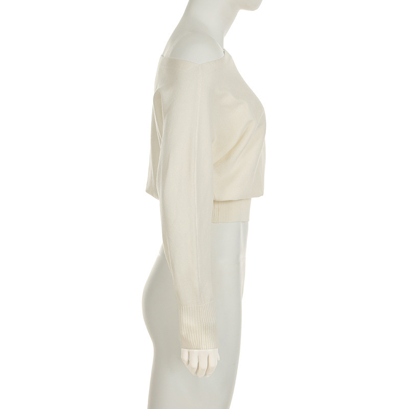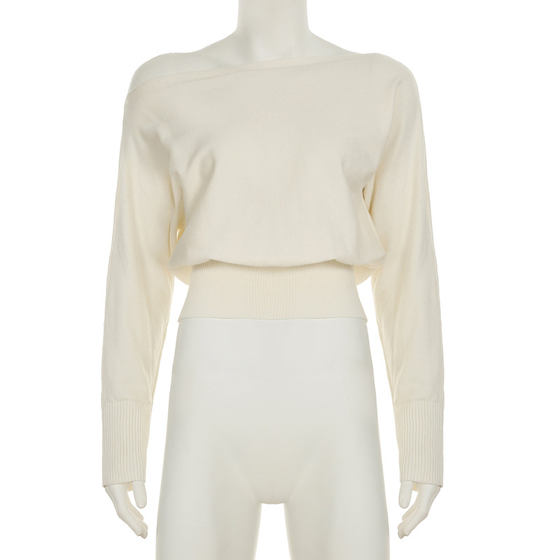 Gentle Diagonal Collar Loose Drawstring Slim Fit Solid Color Sweater Sexy Strapless All Matching Short Top