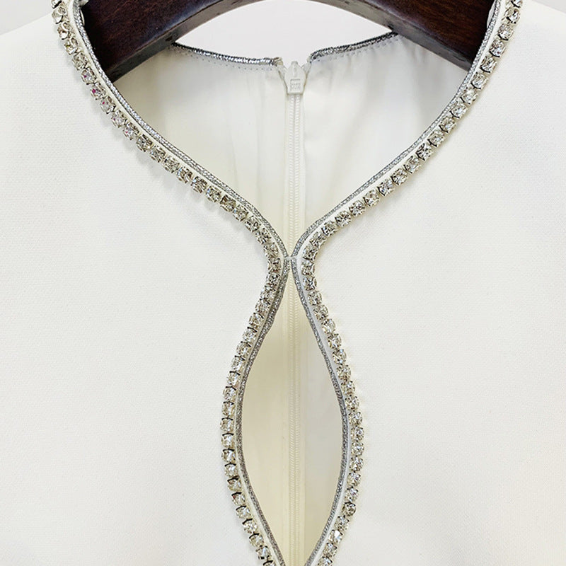 Goods Star High Street Heart Shaped Hollow Out Cutout Jeweled Bead Long Sleeve Micro Pull Jumpsuit