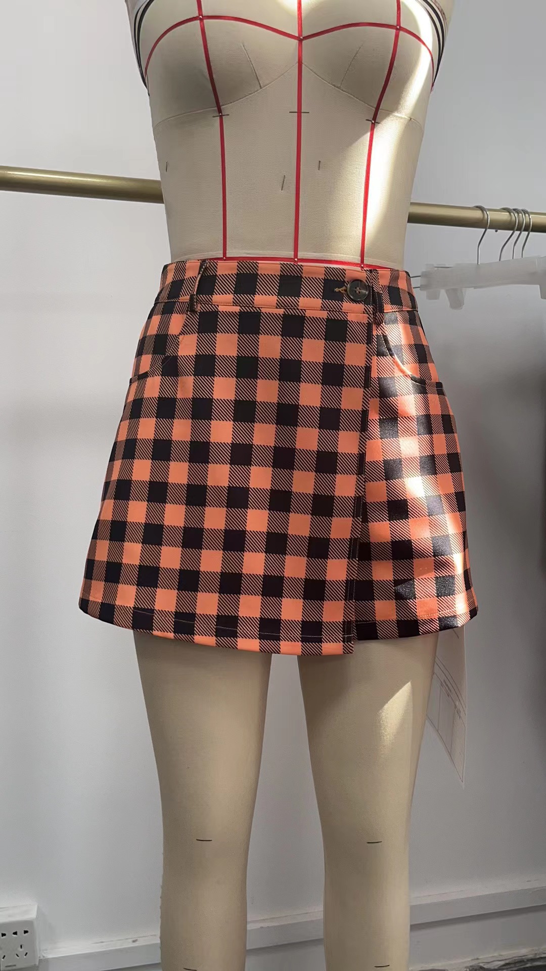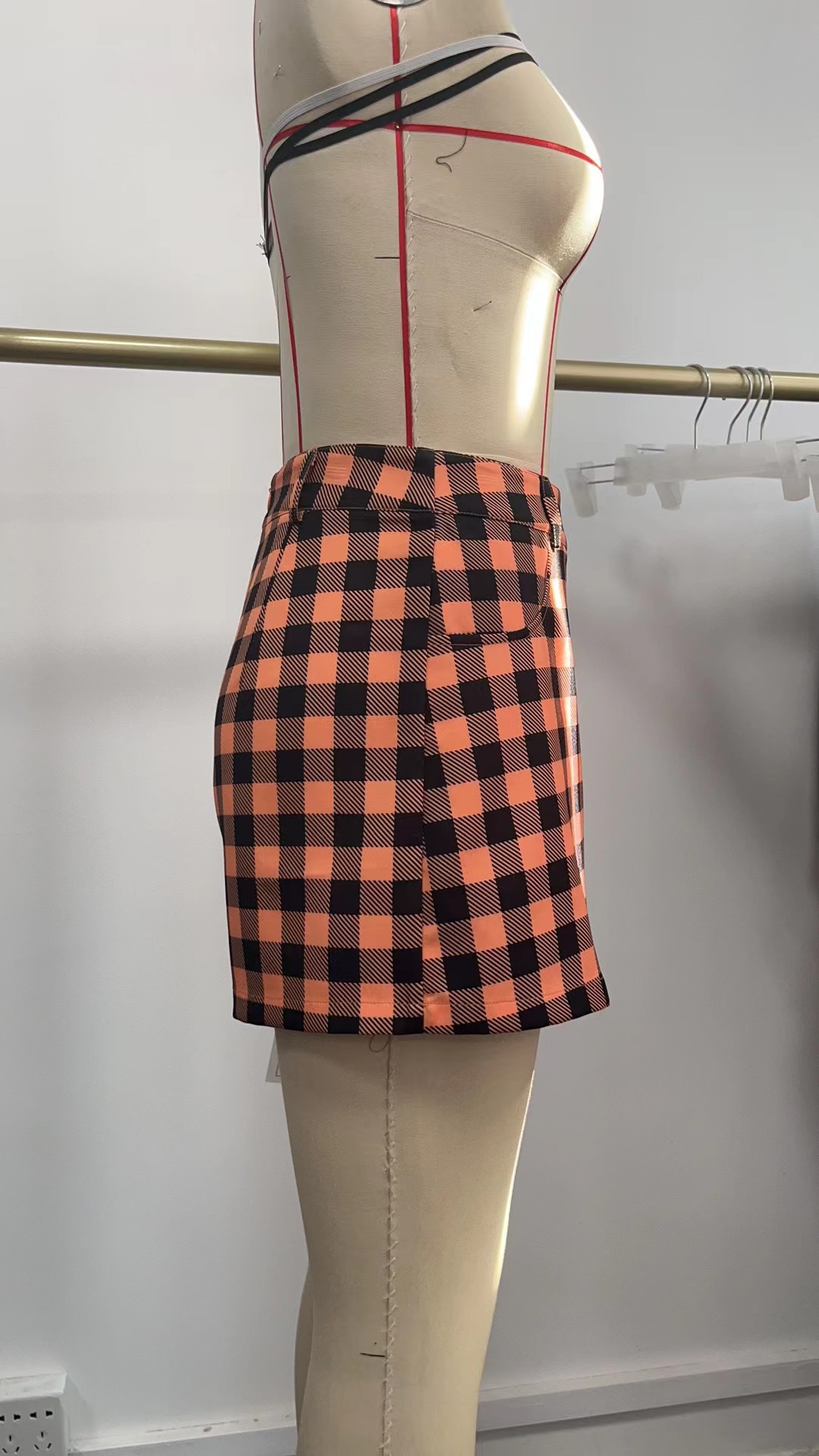 Halloween Pumpkin Plaid Irregular Asymmetric Pantskirt Women Clothing Retro Plaid Short Boot Pants