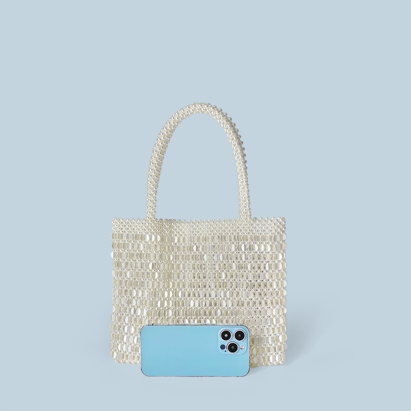 Hand Woven Beaded Bag Vintage Metal Shiny Bag Sequ Pearl Bag Shopping Bag Shoulder Clutch