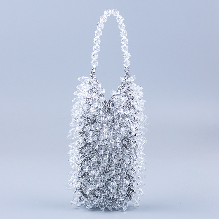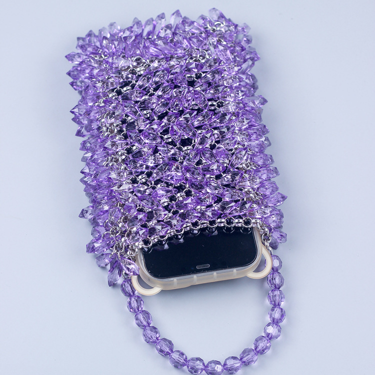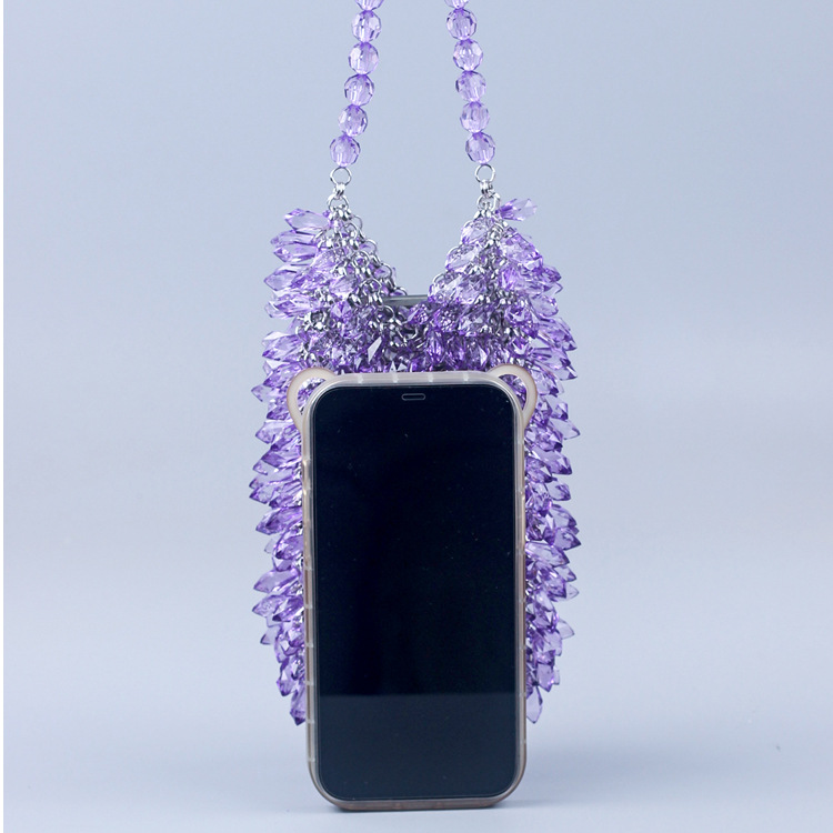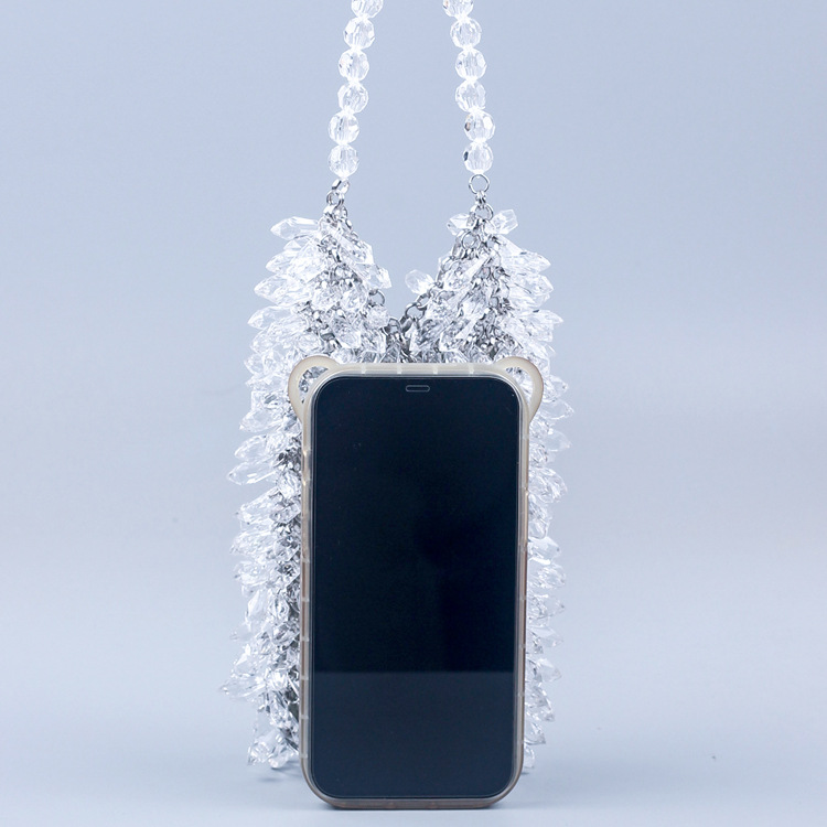 Hand Woven Multi Color Optional Niche Acrylic Transparent Water Drop Beads Chain Cell Phone Tote