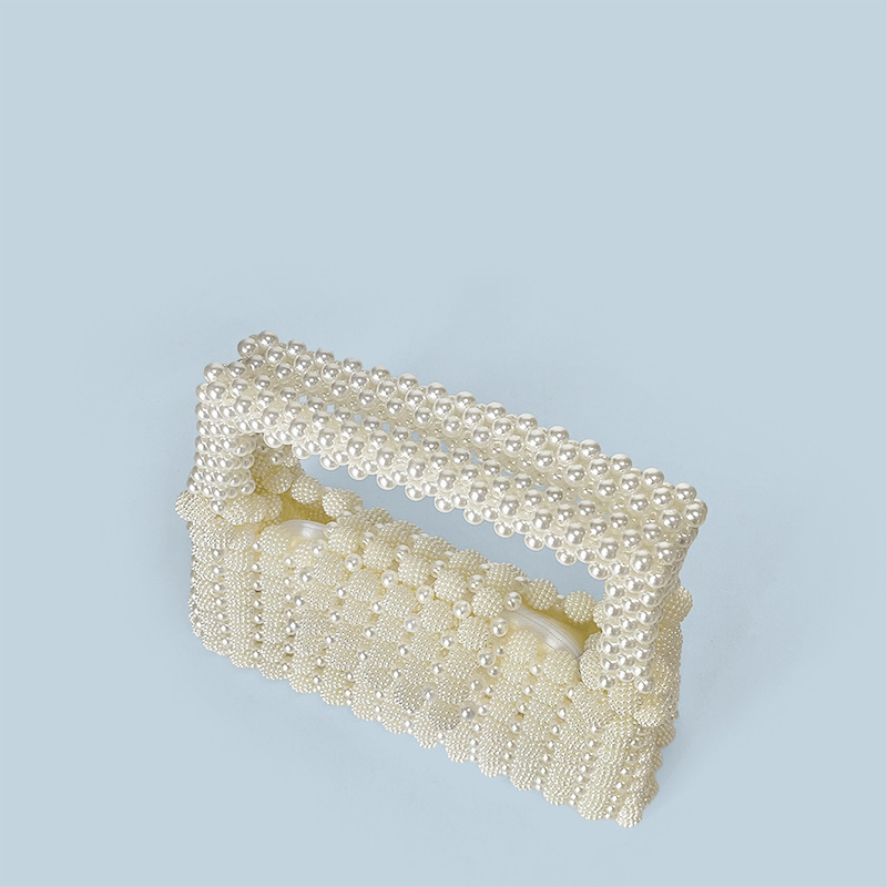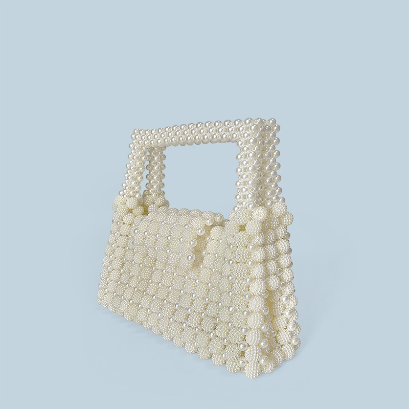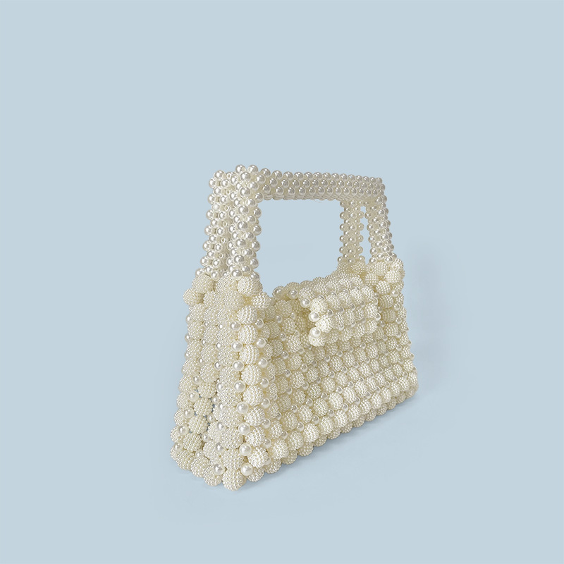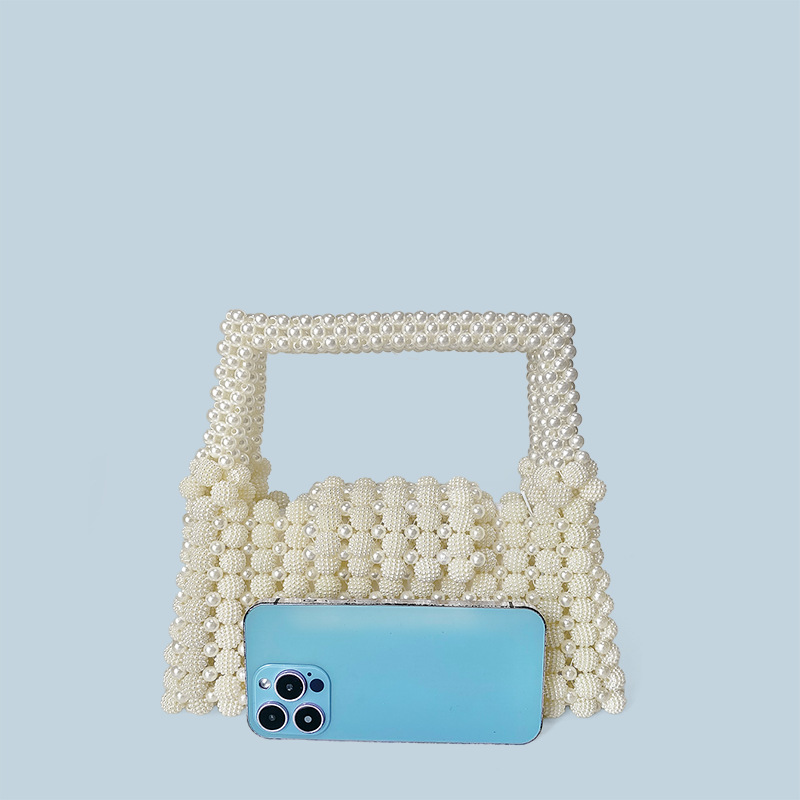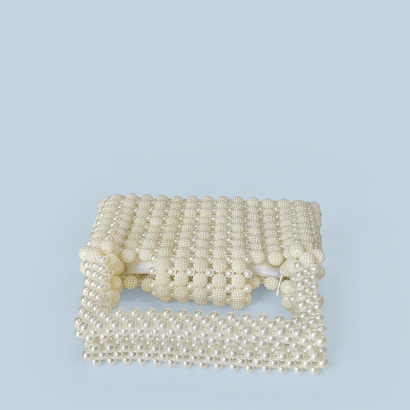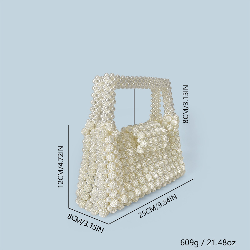 Handmade Beaded Pearl Bag Woven Bag String Beads Handbag Finished Simple Three Dimensional Small Square Bag