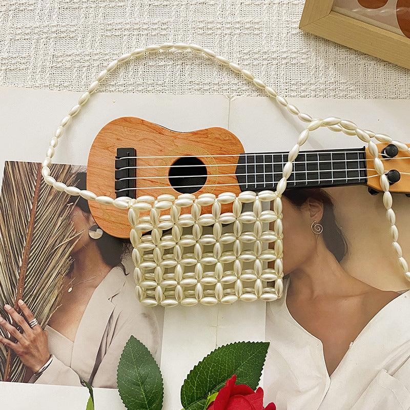 Handmade Beaded Weave Imitation Pearl Hollow Out Cutout Design Portable All Match Casual Messenger Phone Bag Lipstick Pack