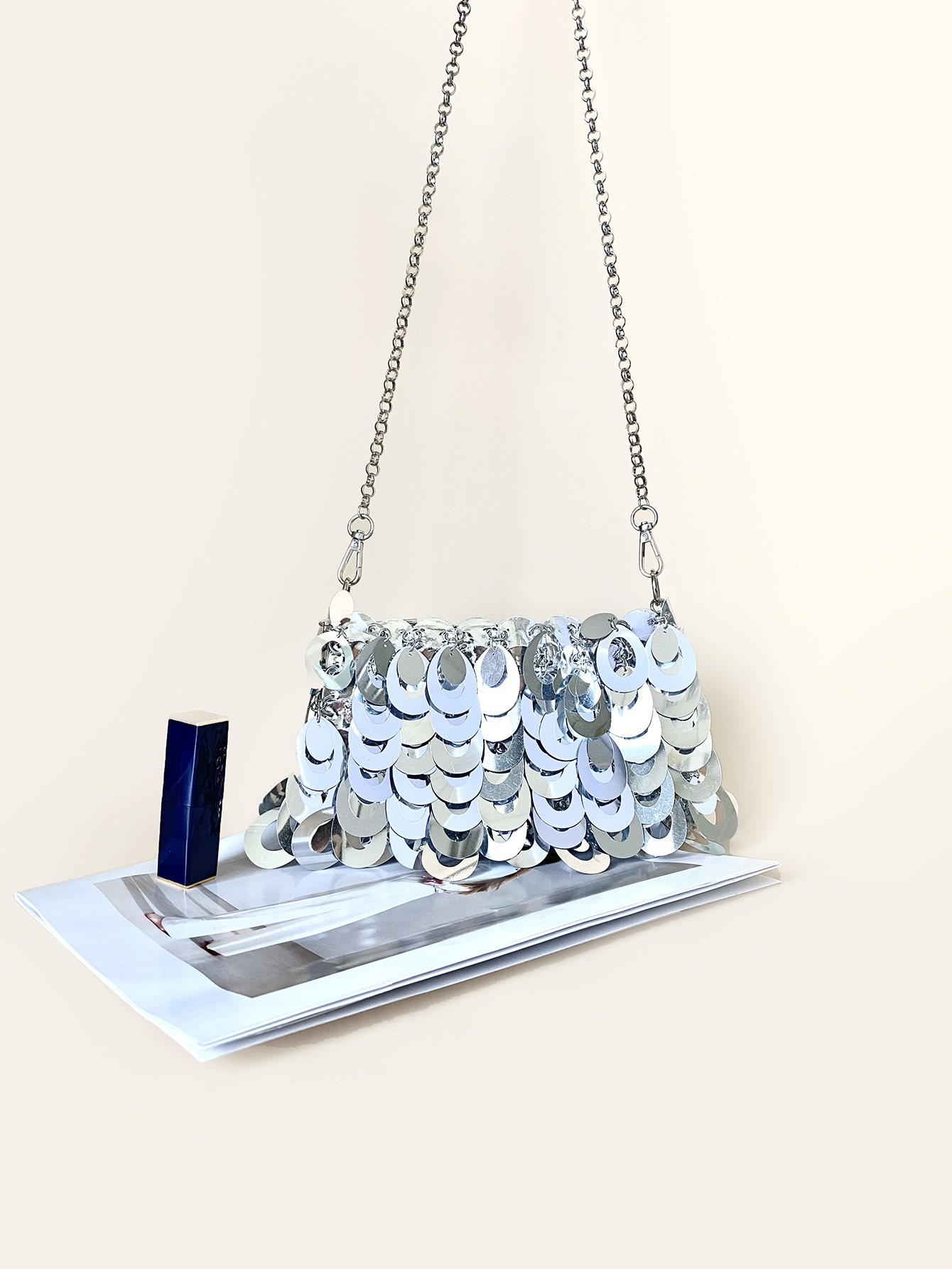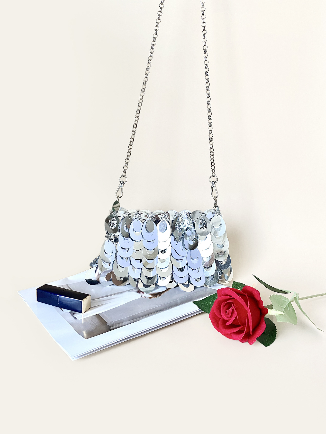 Handmade Bling Sequin Bag Advanced Sense Silver Phone Chain Crossbody Sequ Bag