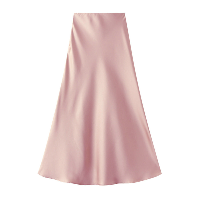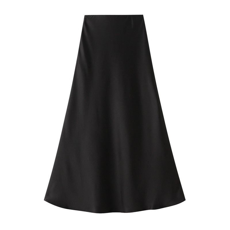 High End Draping Acetate Satin Skirt Women Summer Mid Length Fishtail Skirt High Waist Slimming Hip Skirt