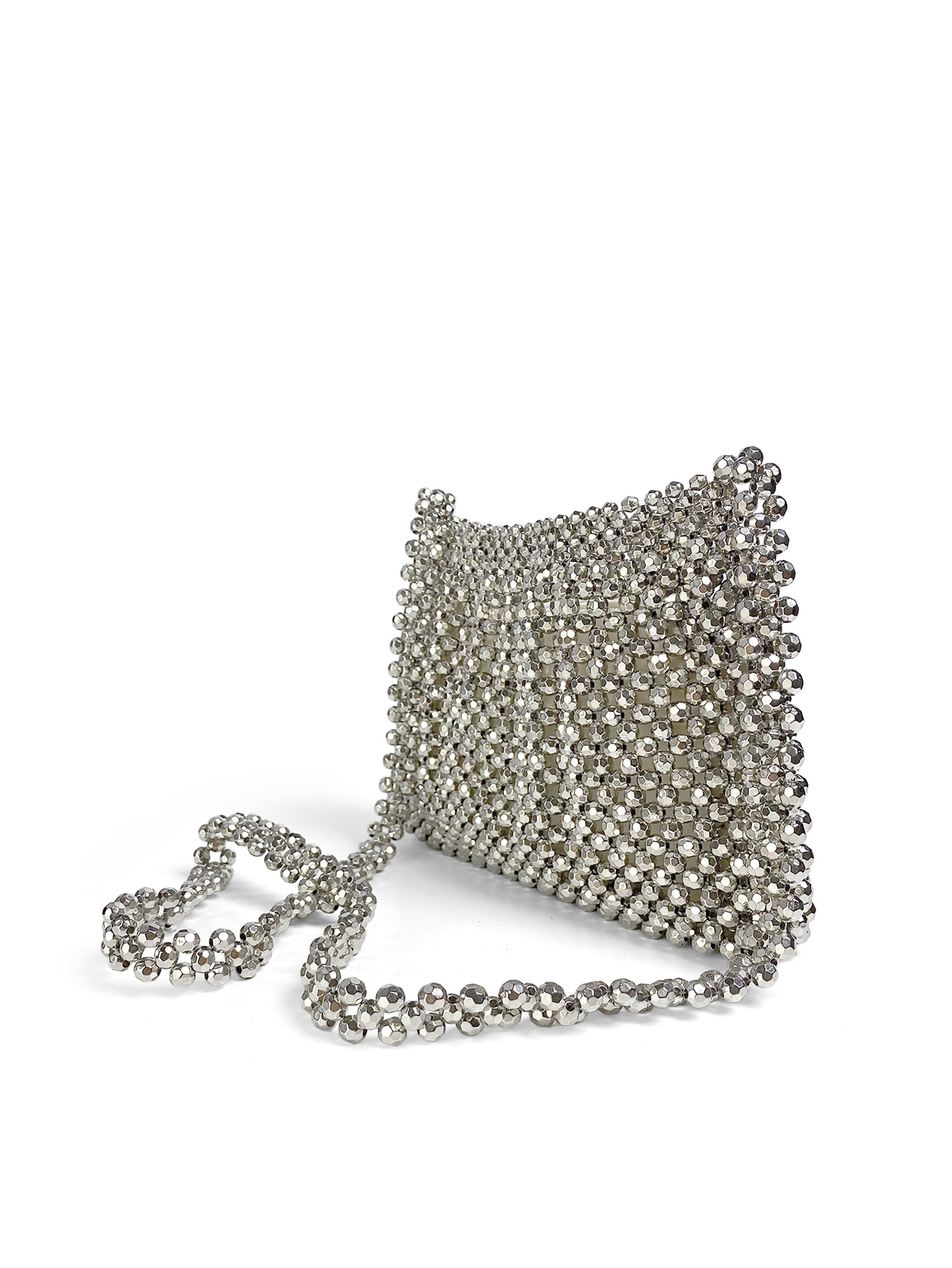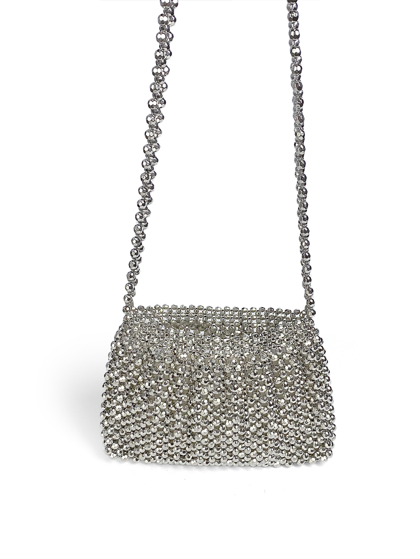 High Grade Complex Metallic Hand Woven Sliver Beads Small Square Bag Chain Crossbody Bag Beaded Mobile Phone Bag