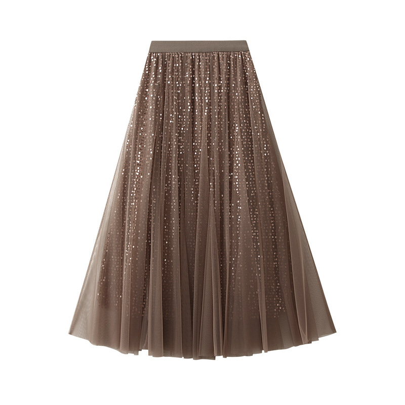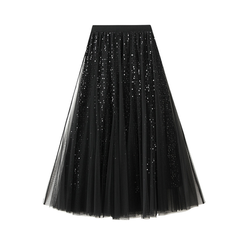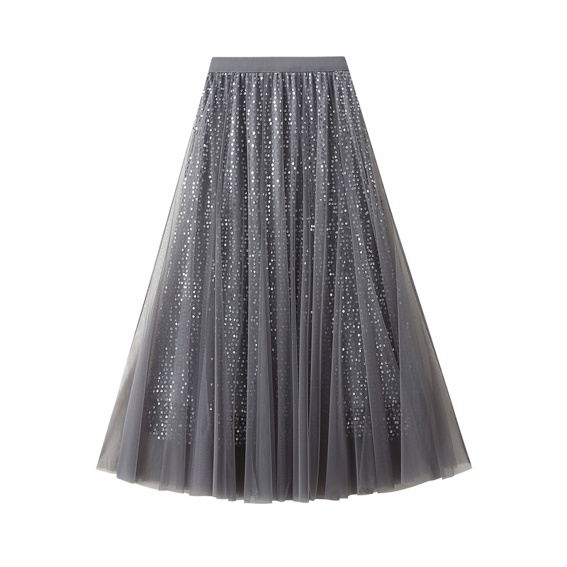 High Grade Sequin Gauze Skirt Women Draping Super Fairy Gauze Skirt Covering Large Swing A line Long Skirt