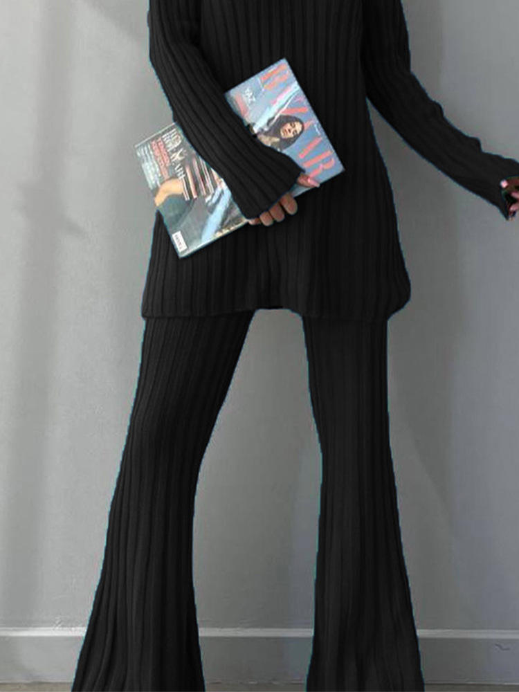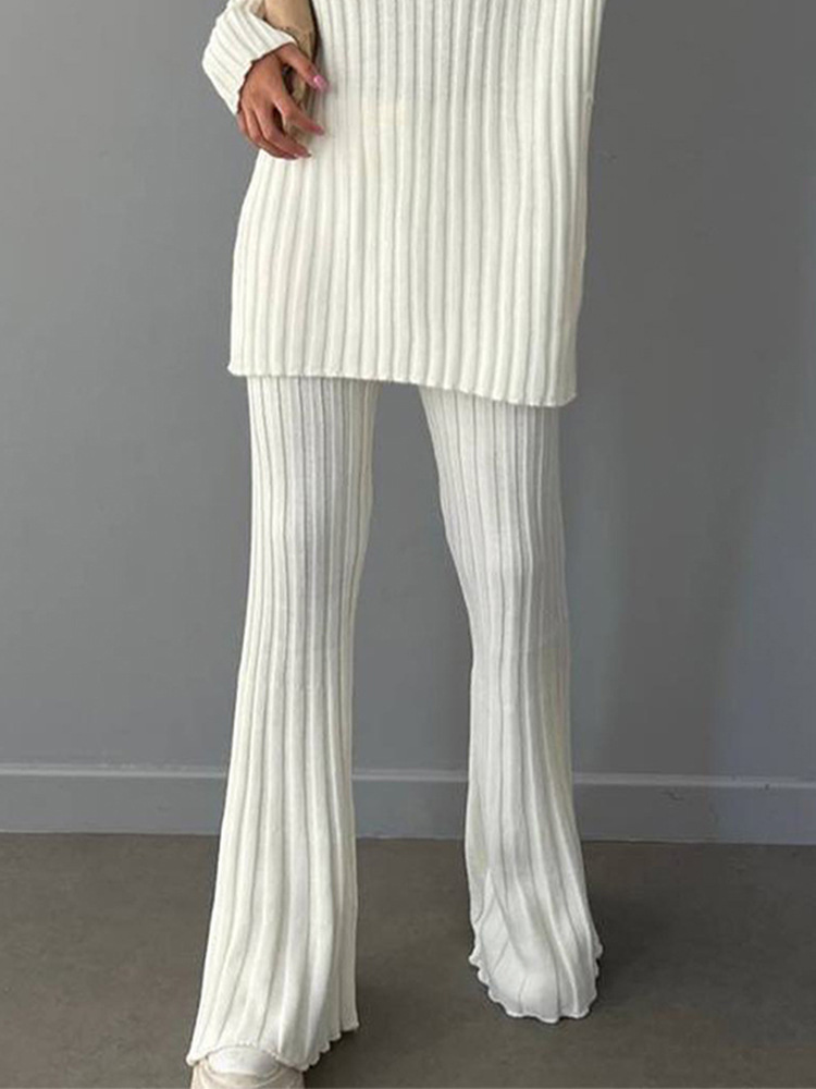 High Neck Ribbing Knitting Set Women Autumn Winter Pullover Sweater Pants Woolen Two Piece Set