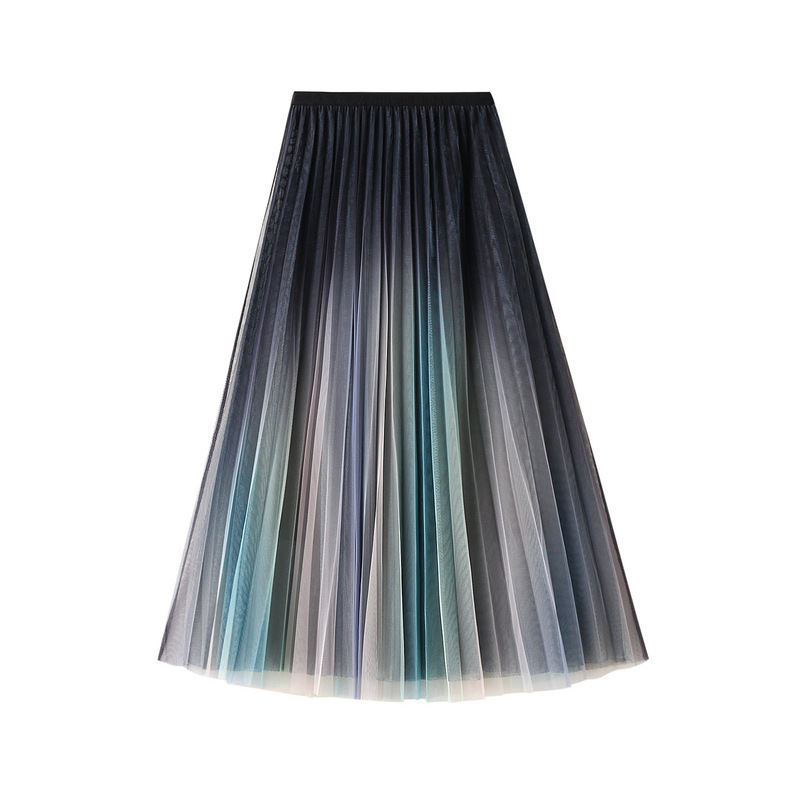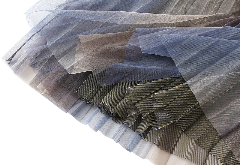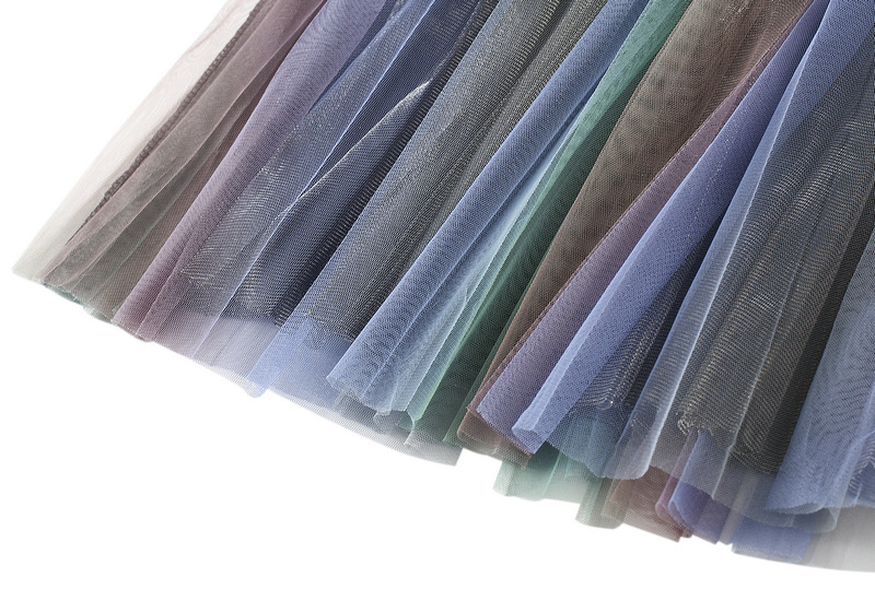 High Waist Slimming Large Hem Double-Layer Mesh Gradient Bright Color Mid-Length Skirt Spring Summer Women 0859