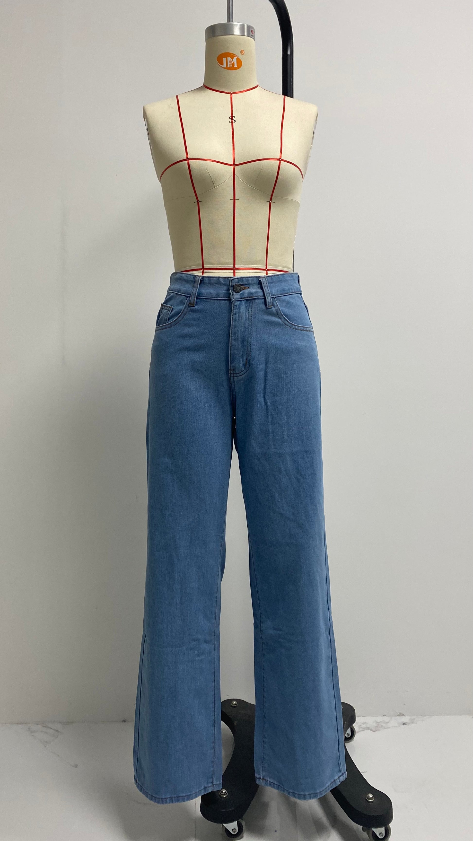High Waist Wash Women Jeans Long Straight Leg Pants