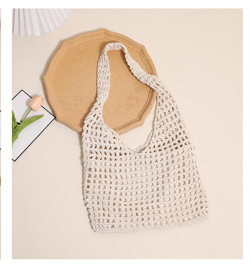 Hollow Out Cutout Cotton Thread Woven Bag Summer Simple Shoulder Straw Bag Vacation Beach Bag Women Bag