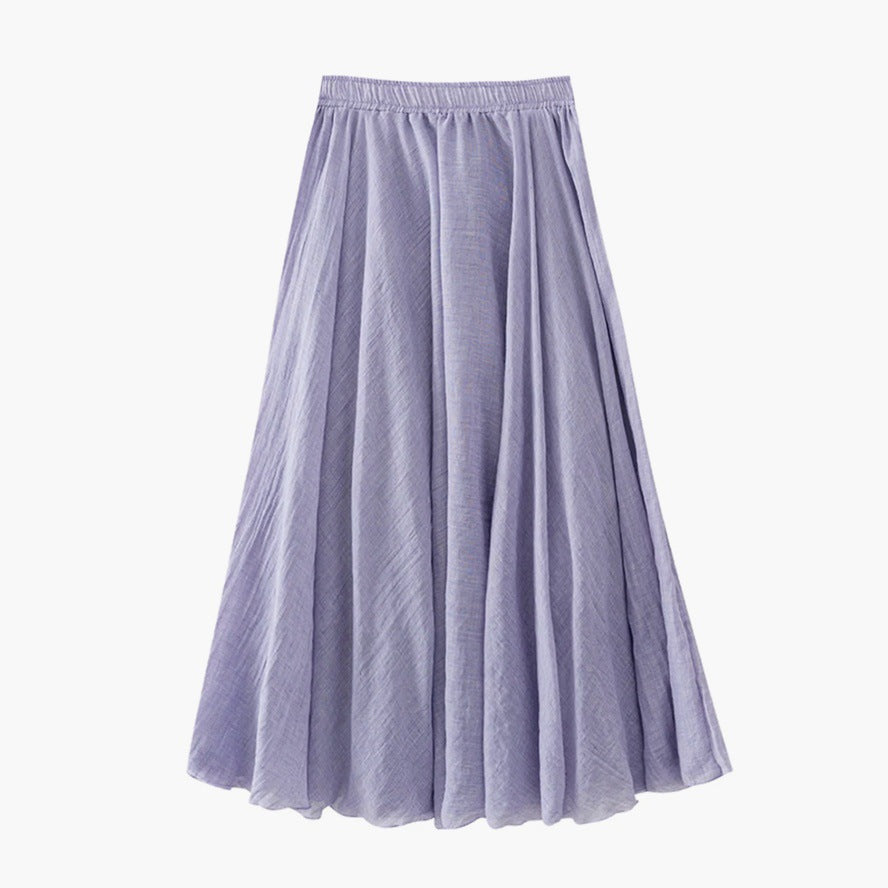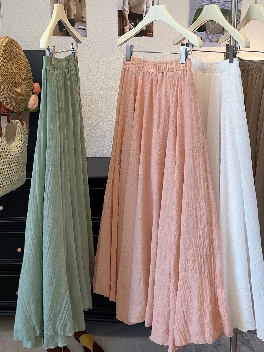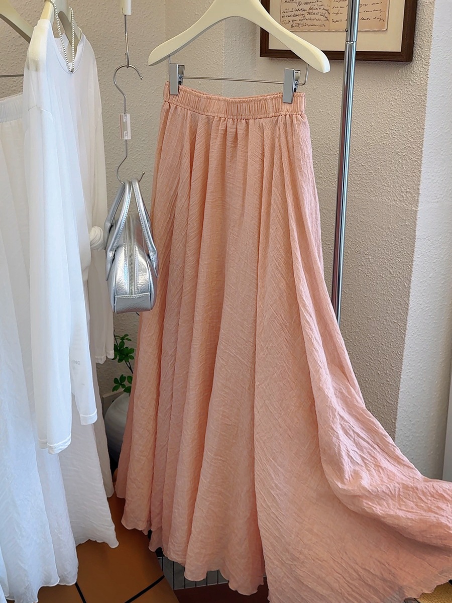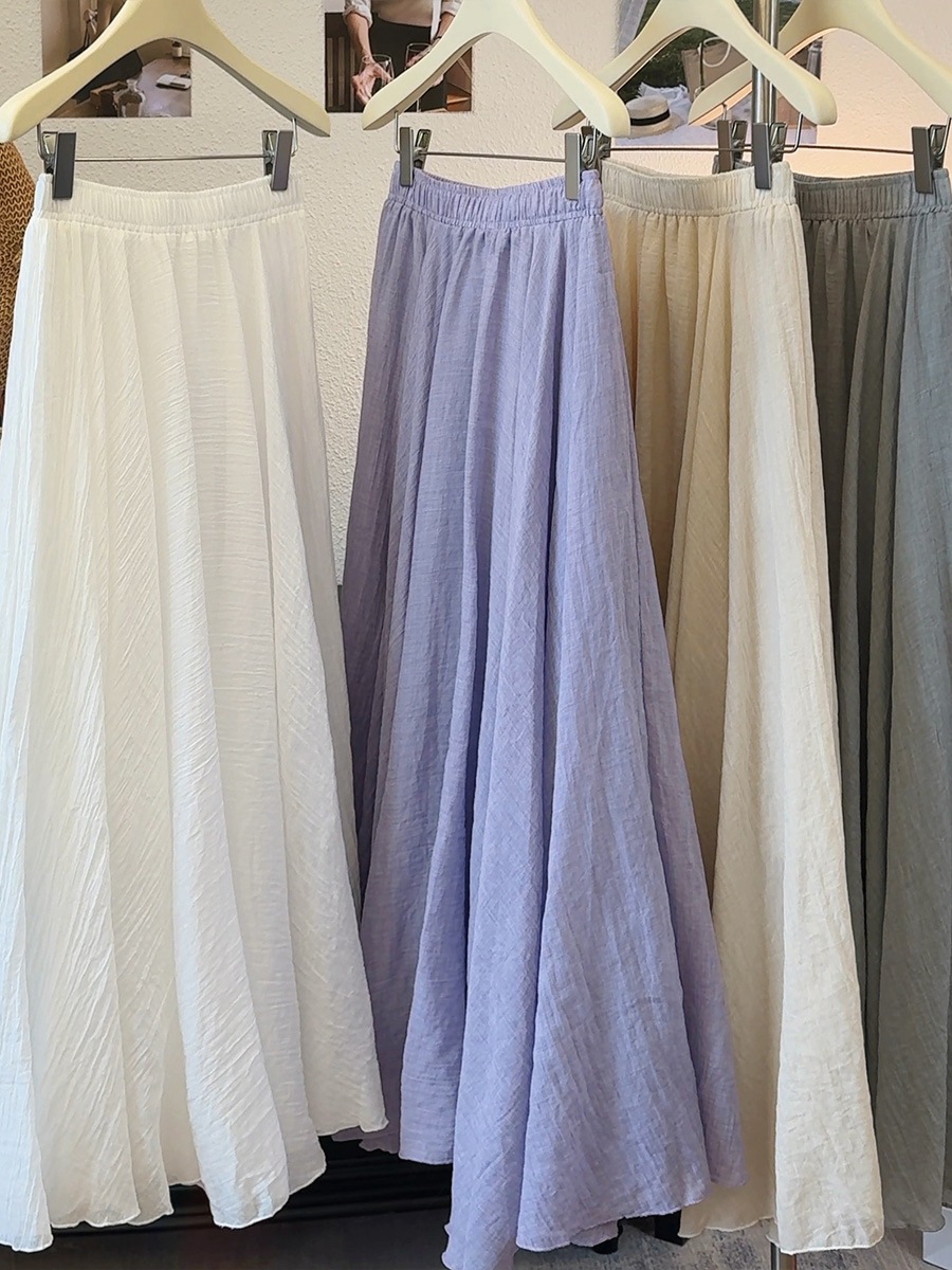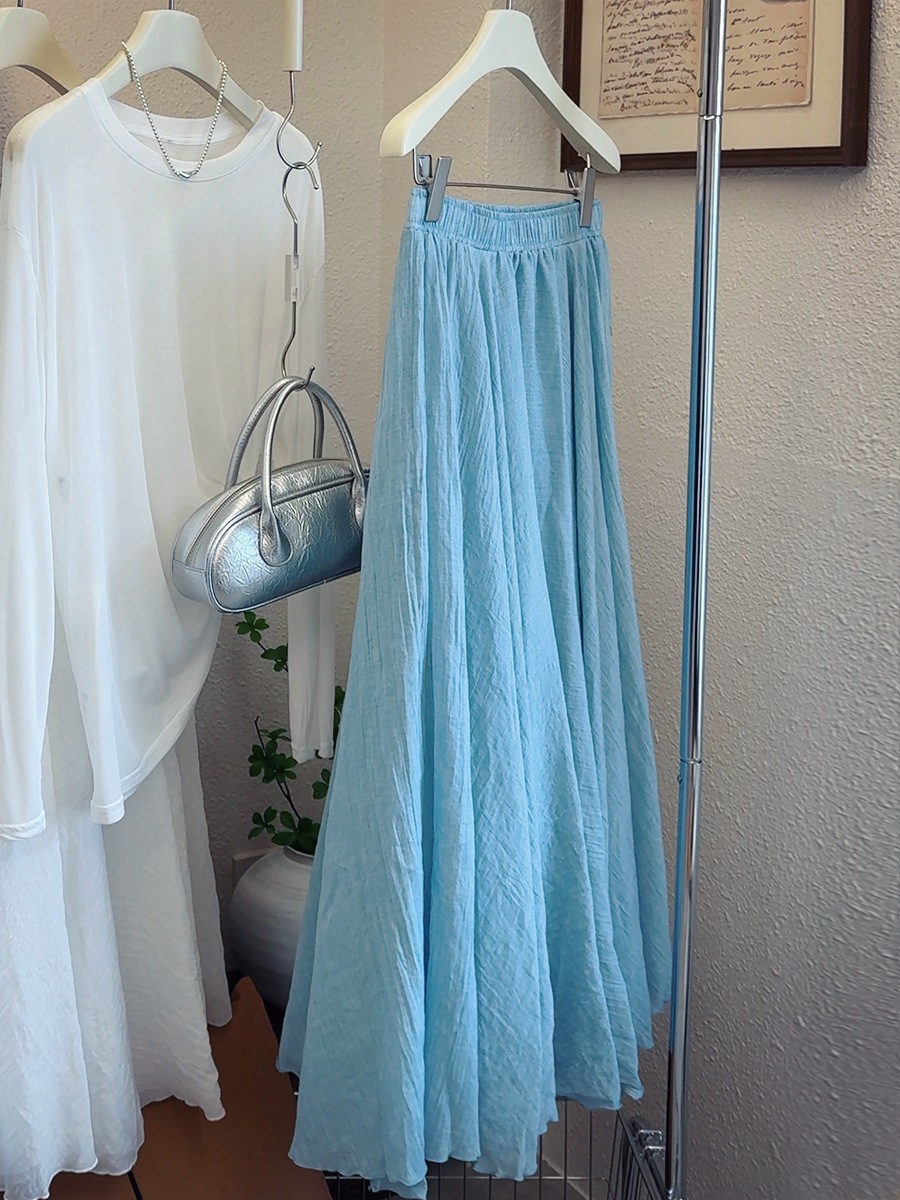 Ice Tencel Cotton Linen Texture Pleated Skirt Women Summer Drape Casual Swing A line Umbrella Skirt Long Skirt