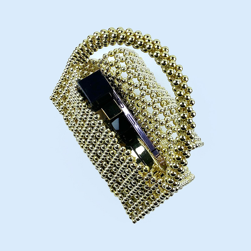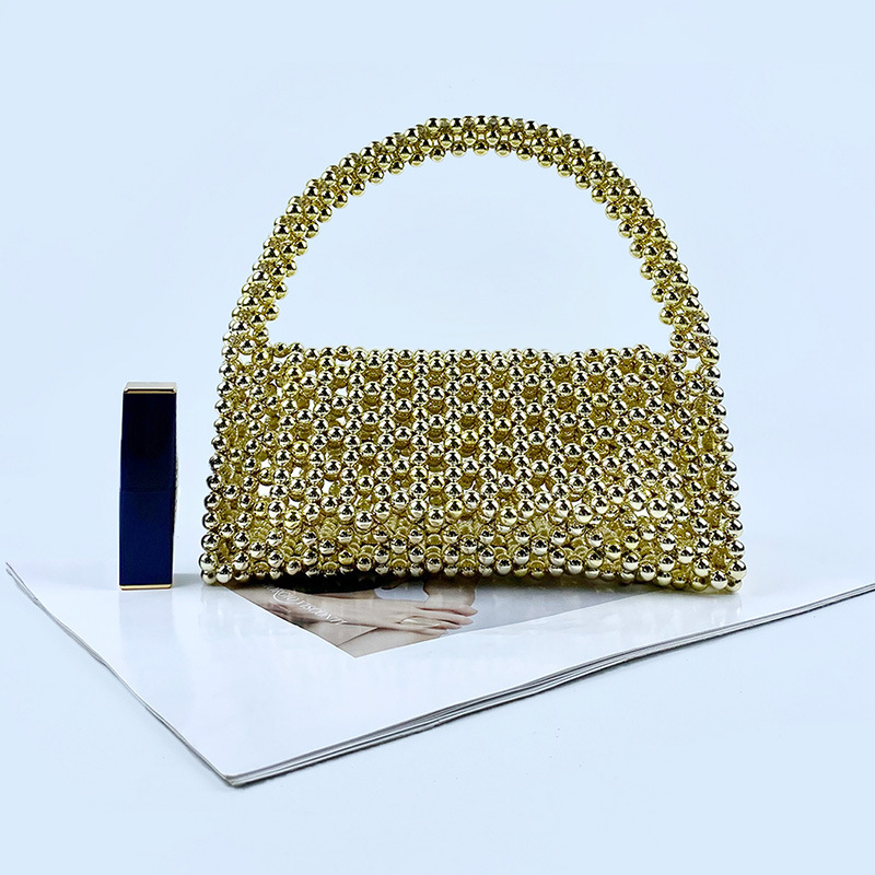 Internet Celebrity Same Triangle Handmade Beaded Popular Hollow Out Cutout Flip Woven Shoulder Portable Underarm Bag Long Handle