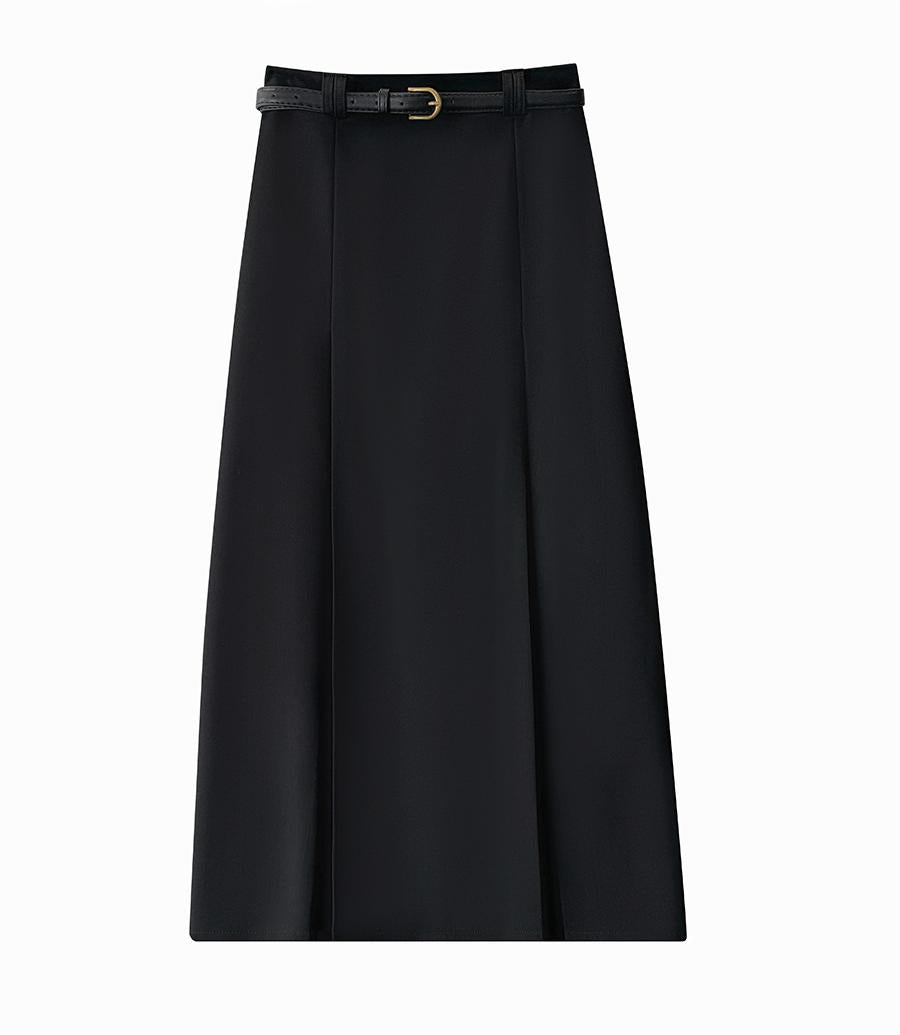 Korean Office High Waist Slimming Slit Pleated Skirt Women Spring Summer High Grade Belt Skirt
