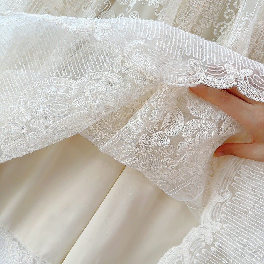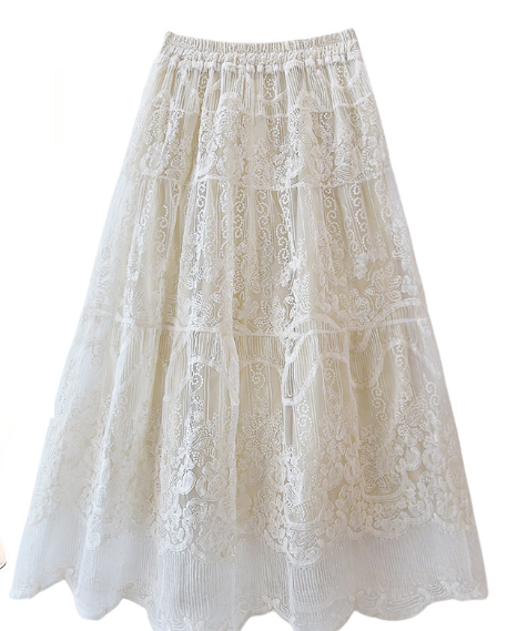 Lace Embroidered Skirt Four Seasons Korean Embroidered Pettiskirt Gentle Lace Mesh Umbrella Skirt