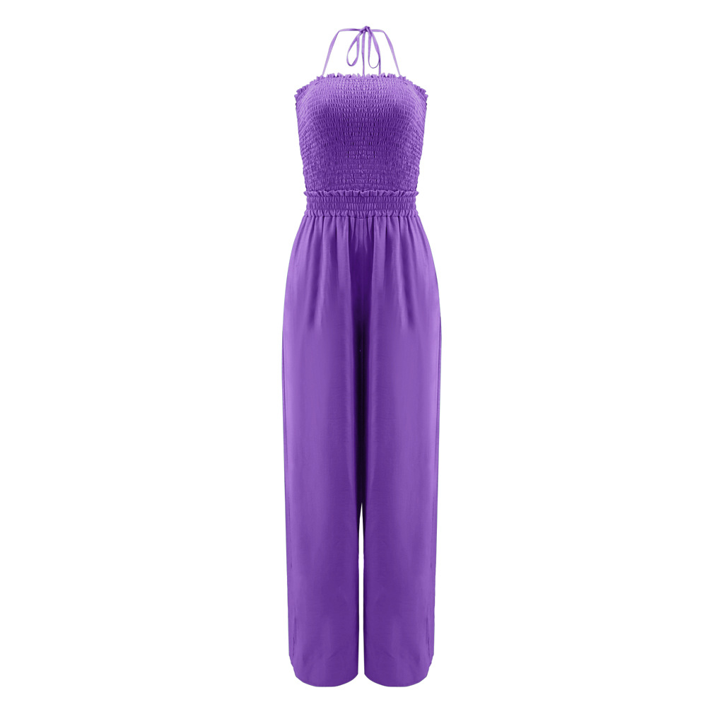 Lace up Fashionable Bandeau Sexy Backless Elastic Waist Loose Straight Jumpsuit