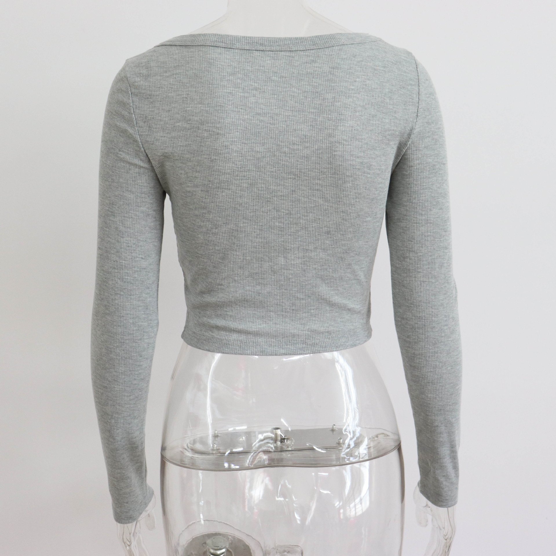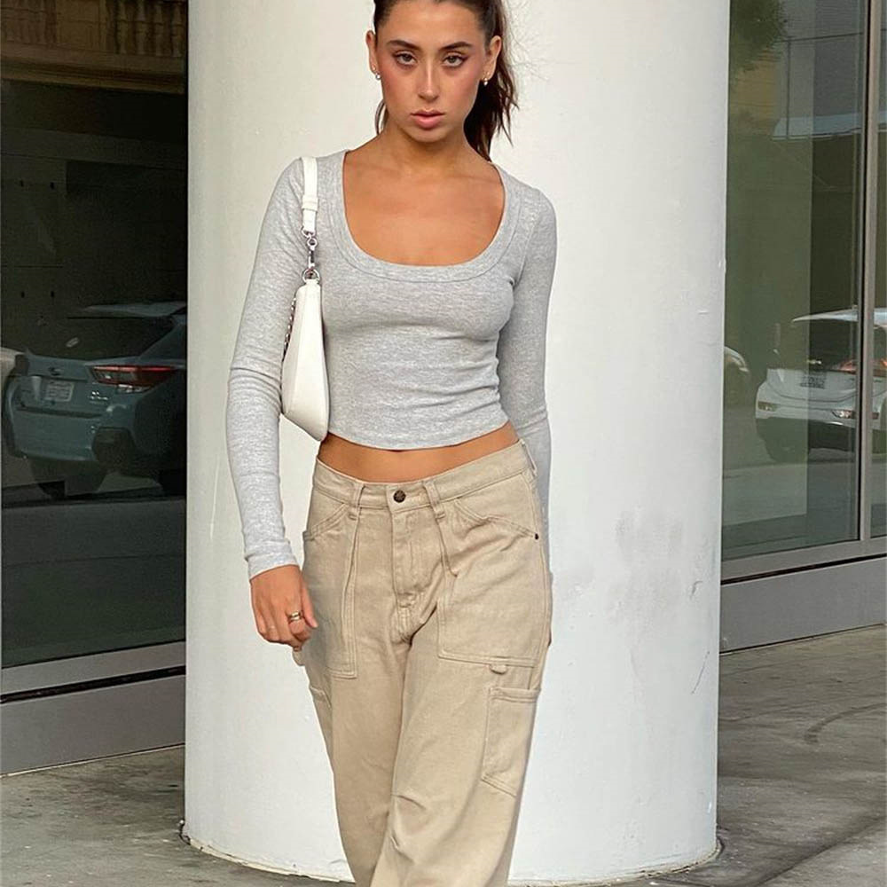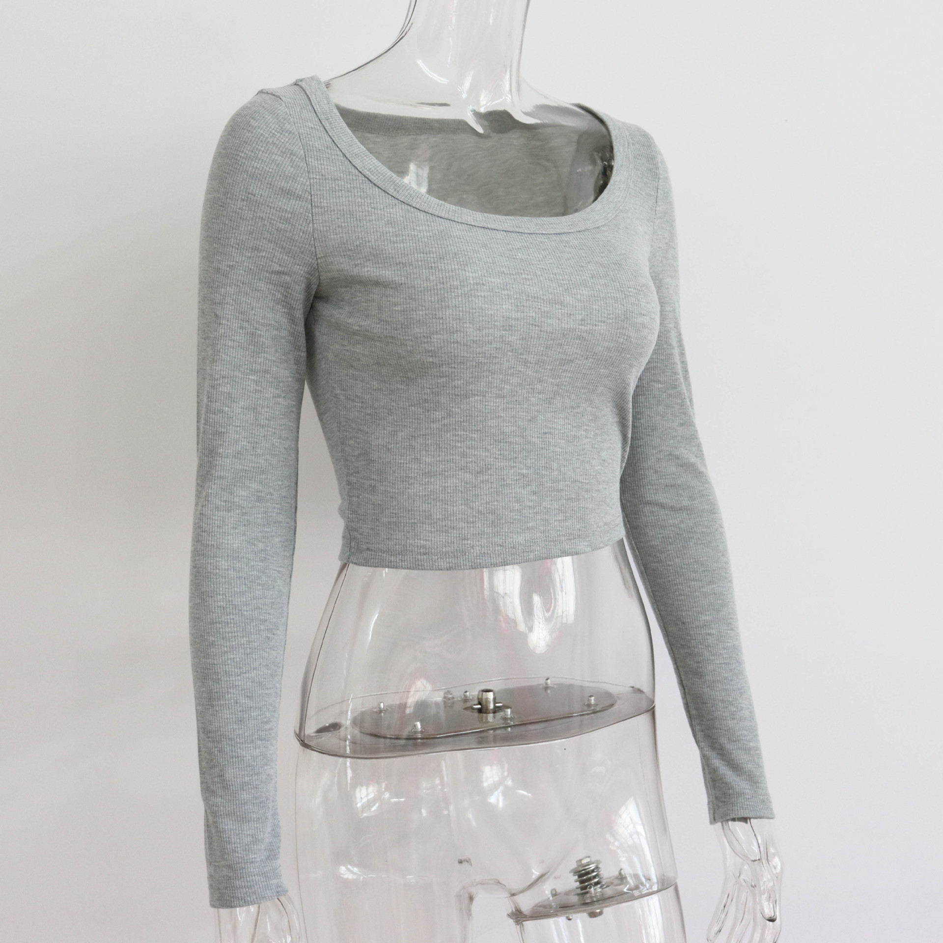 Large round Neck Long Sleeves Rib Short Top Women Casual Sexy Autumn Winter Knitting Bottoming Shirt Street Slim Top