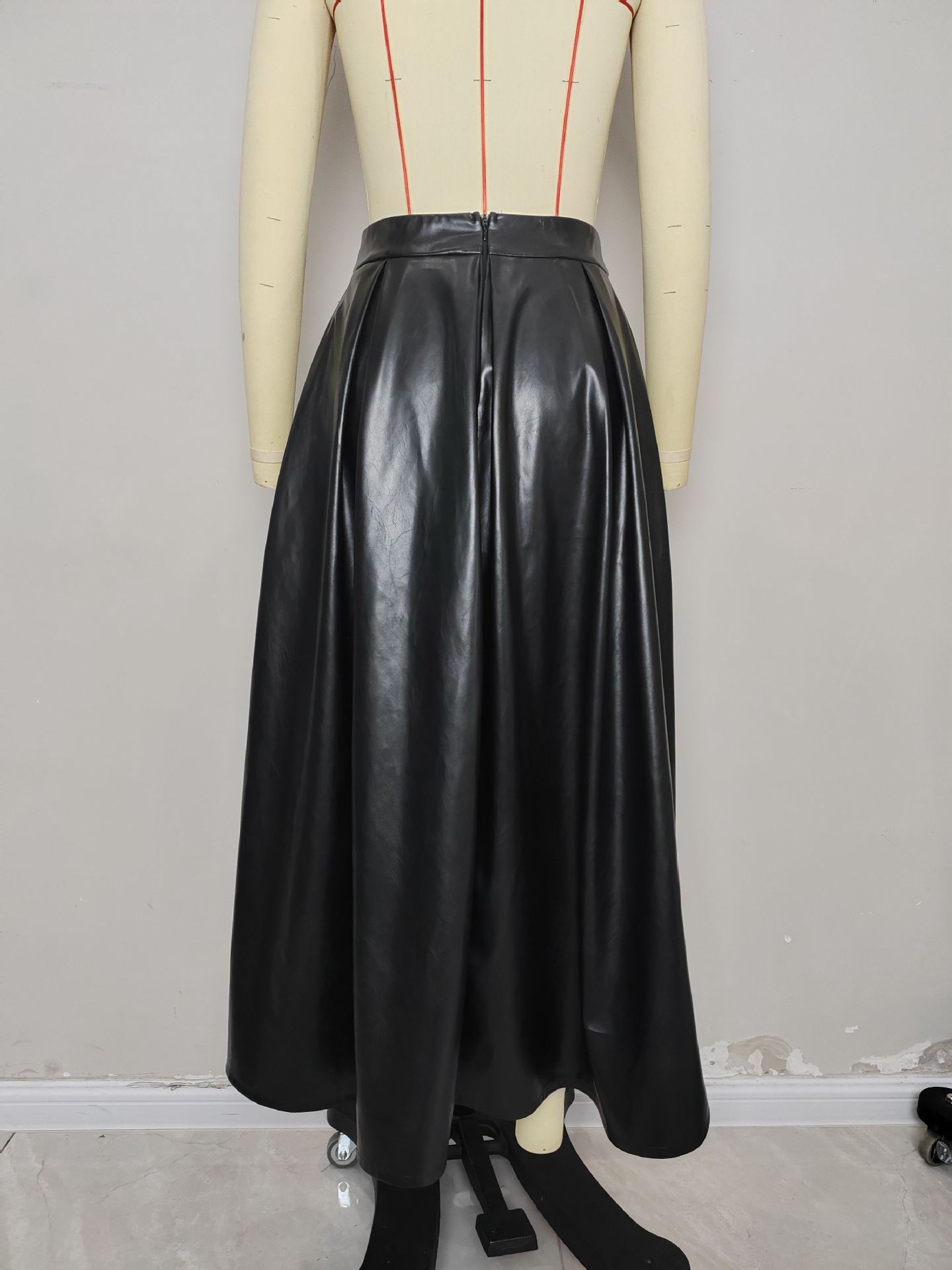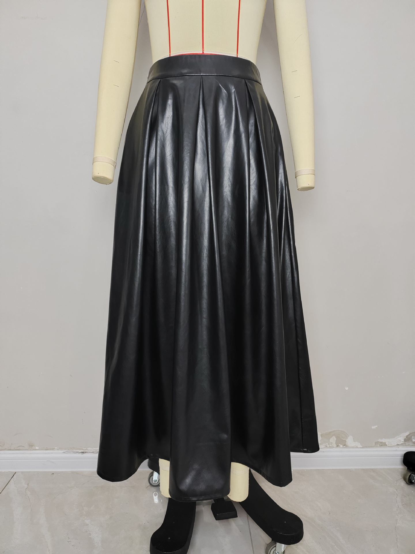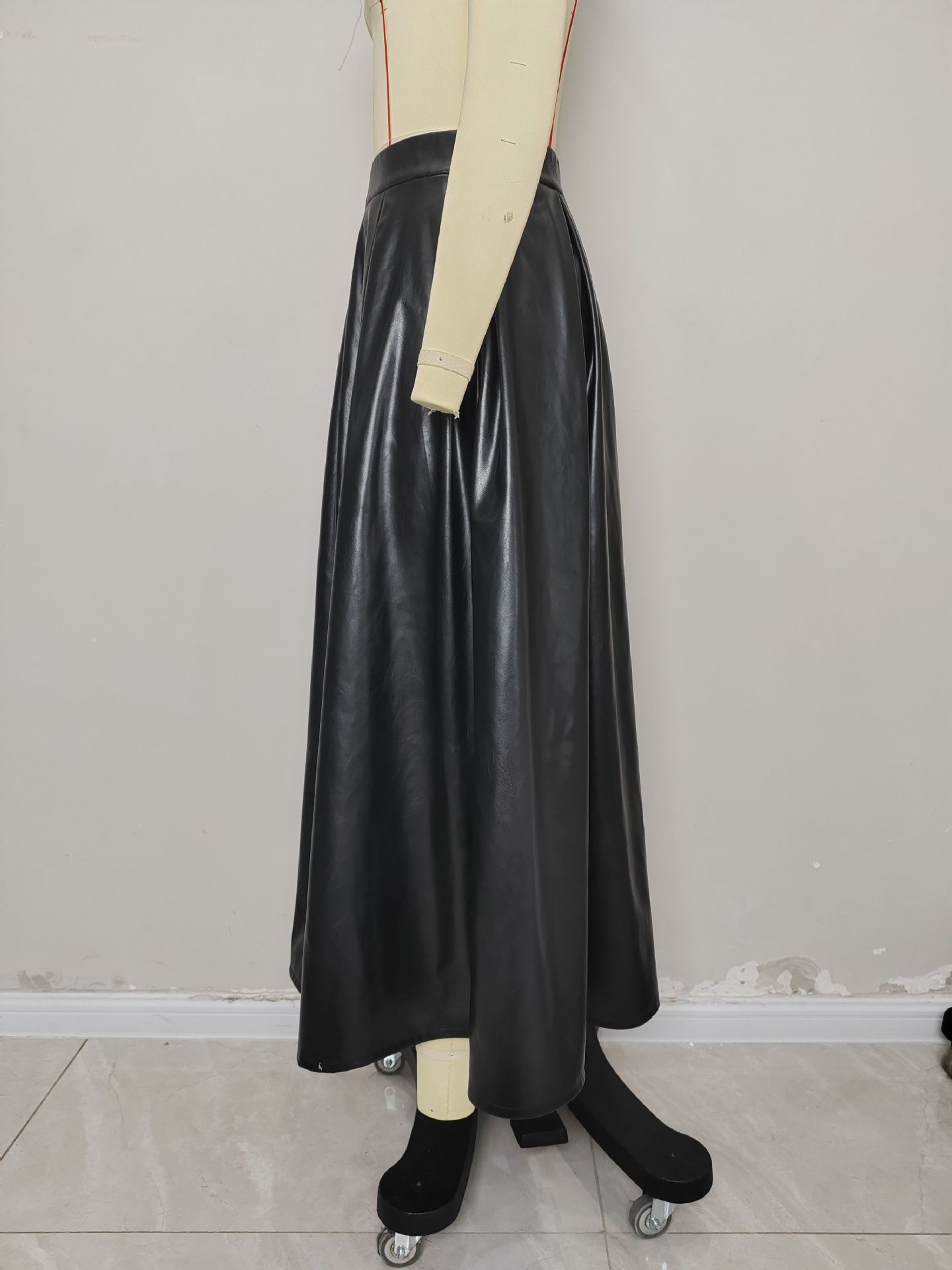 Large Skirt Ladies Spring Autumn High Waist Office Umbrella Skirt Faux Leather Design A line Skirt