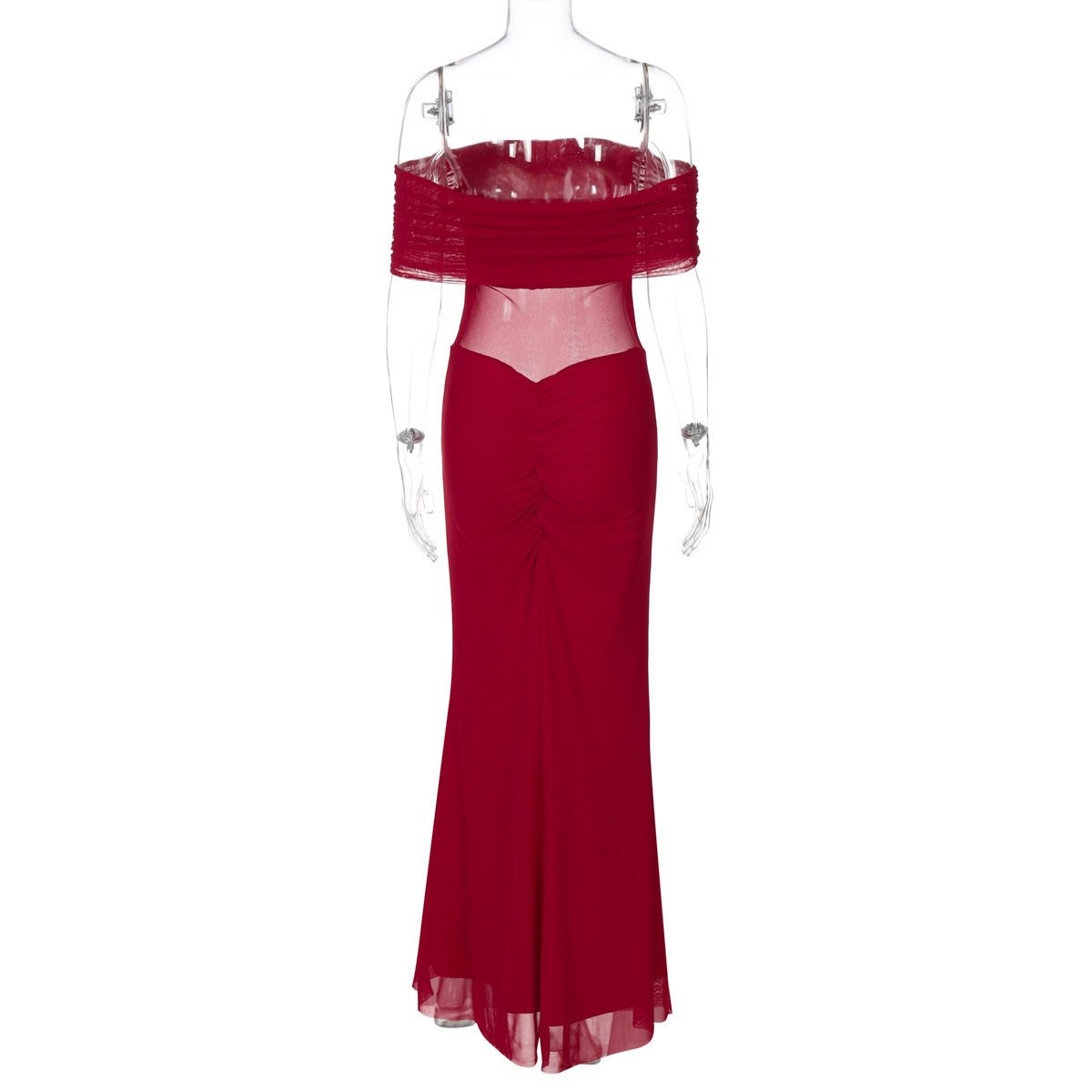 Mesh Stitching Maxi Dress Summer Sexy off Shoulder Pleated Slim Dress