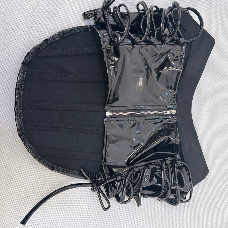 Metallic Coated Fabric Women Clothing Autumn Winter Sexy Sexy Lace Up Tube Top Vest Boning Corset Waist Tied Vest Women
