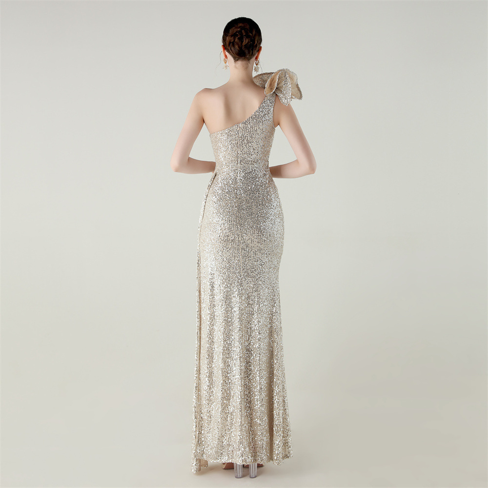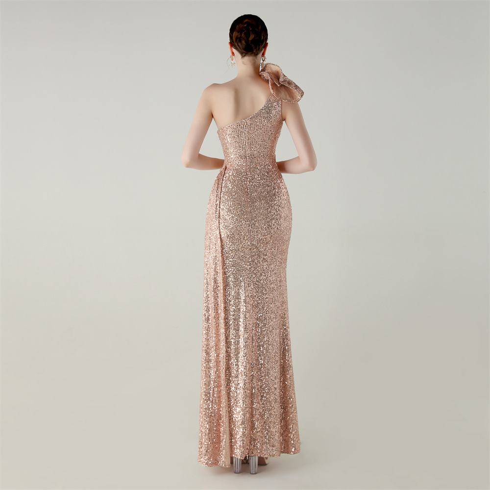 One Shoulder Sequin Craft Floral Beaded Slim Fishtail Evening Dress Award Ceremony High End Social Dress