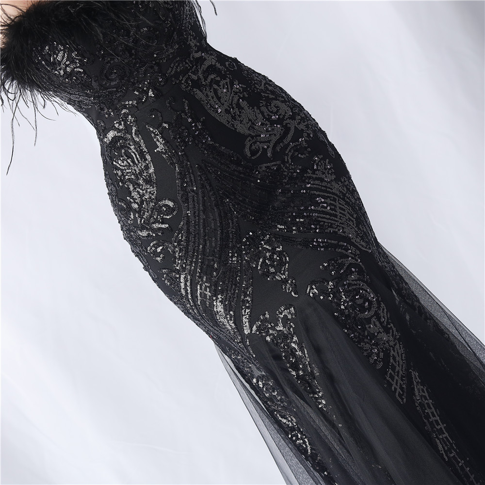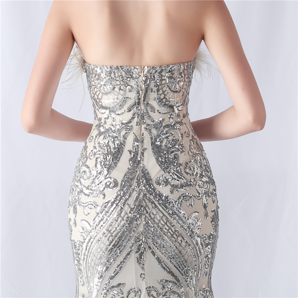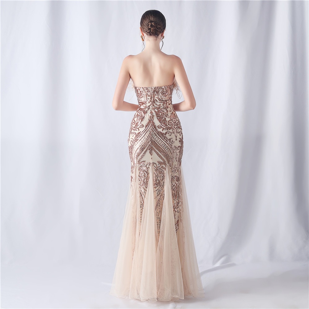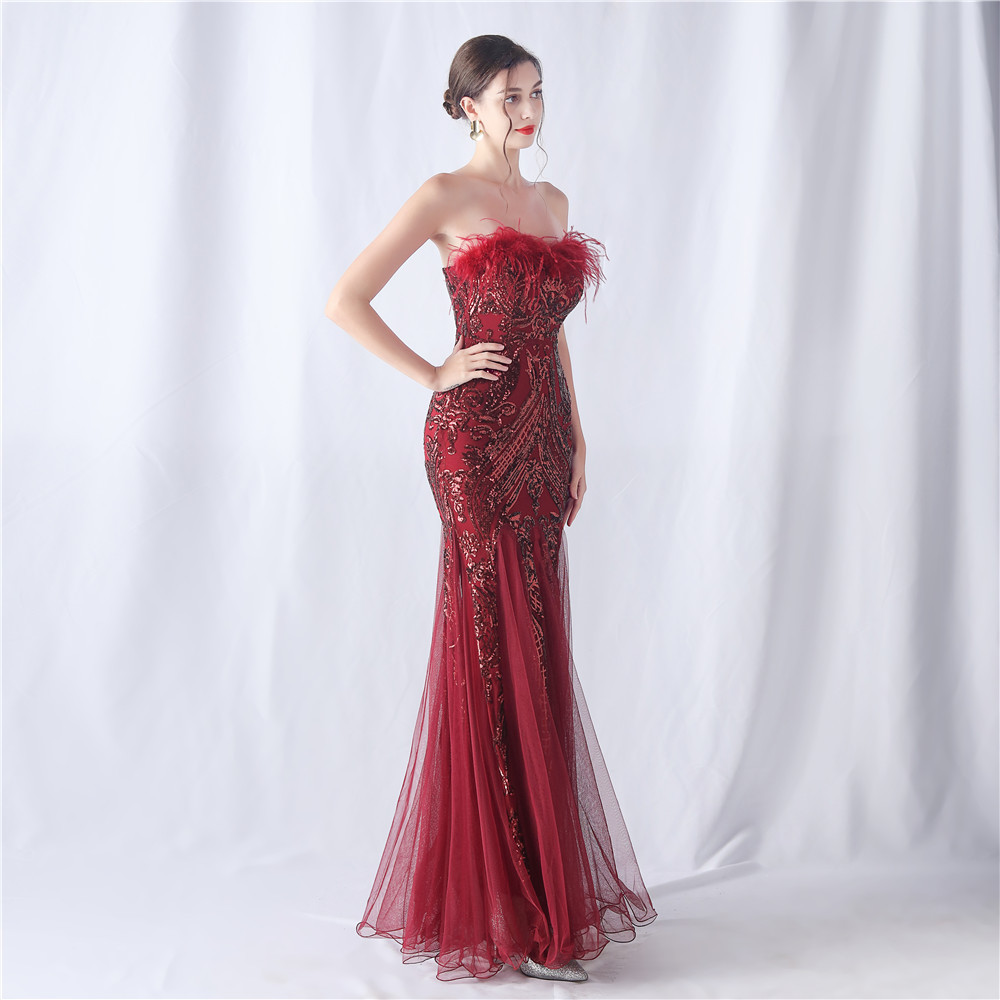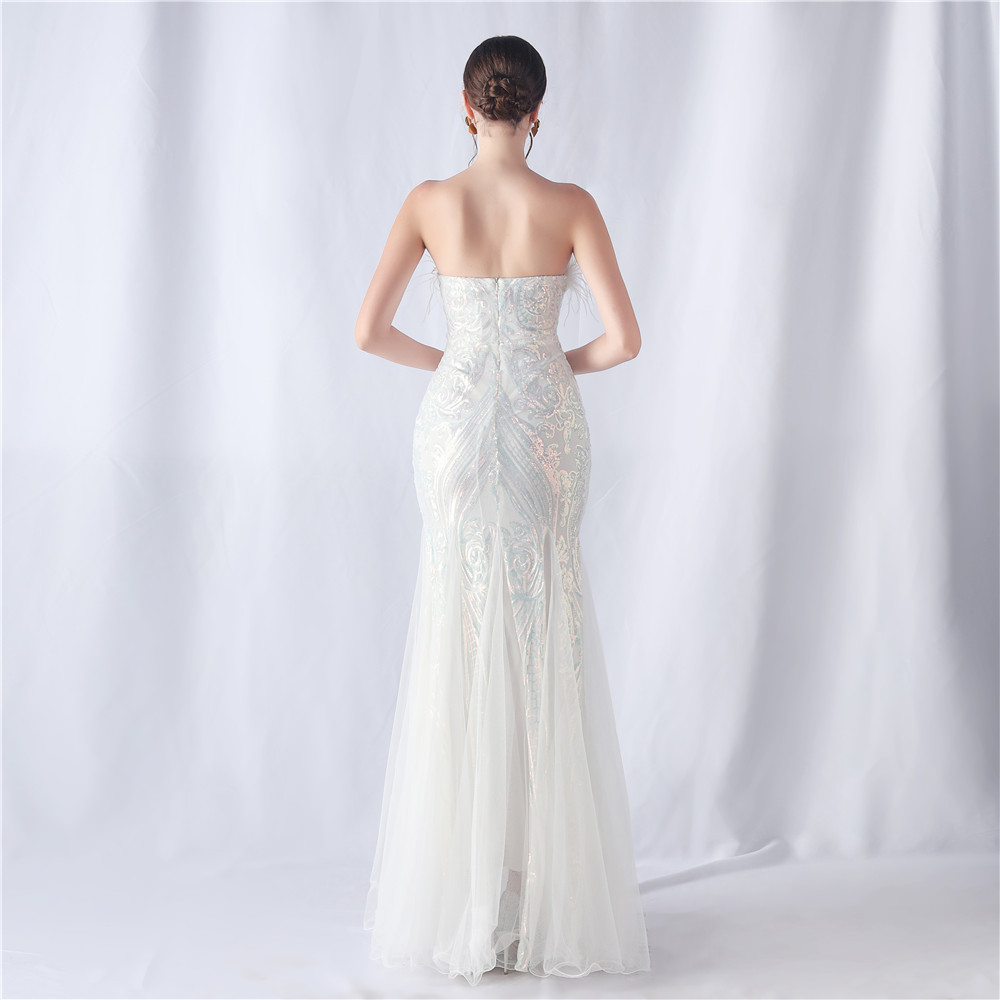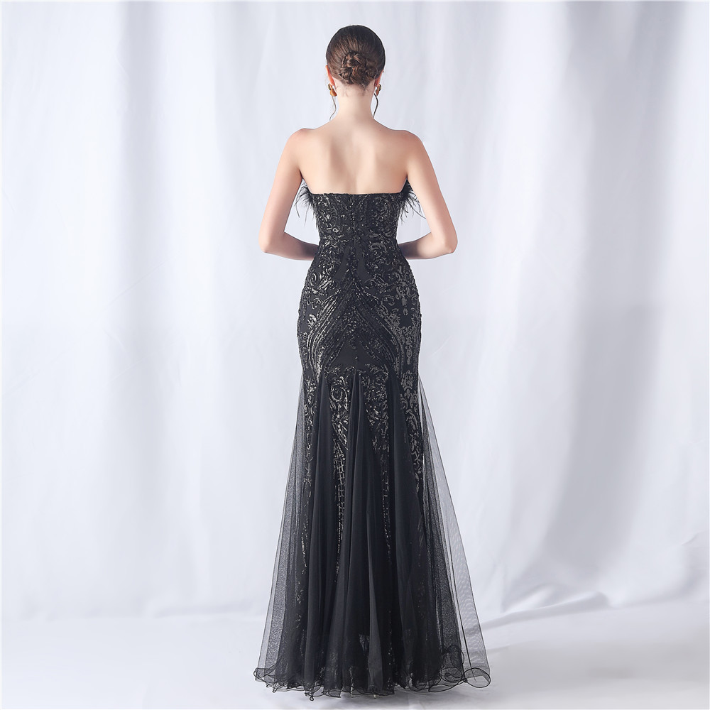 Ostrich Feather Positioning Floral Cutting Wedding Annual Meeting Tube Top Sequin Gauze Evening Dress