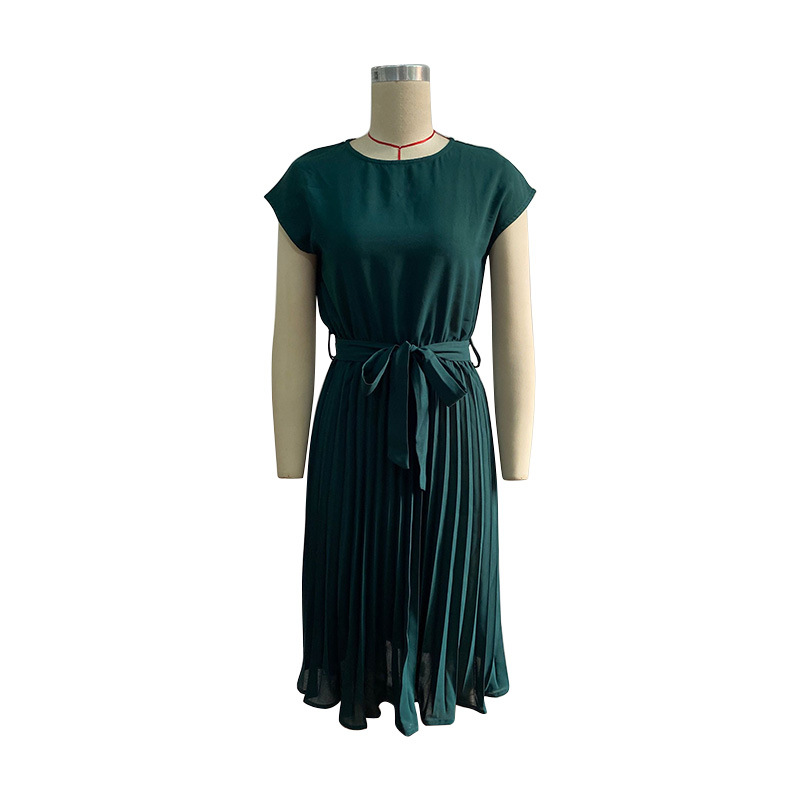 Products Summer Vacation Women Lace up Solid Color Pleated Dress