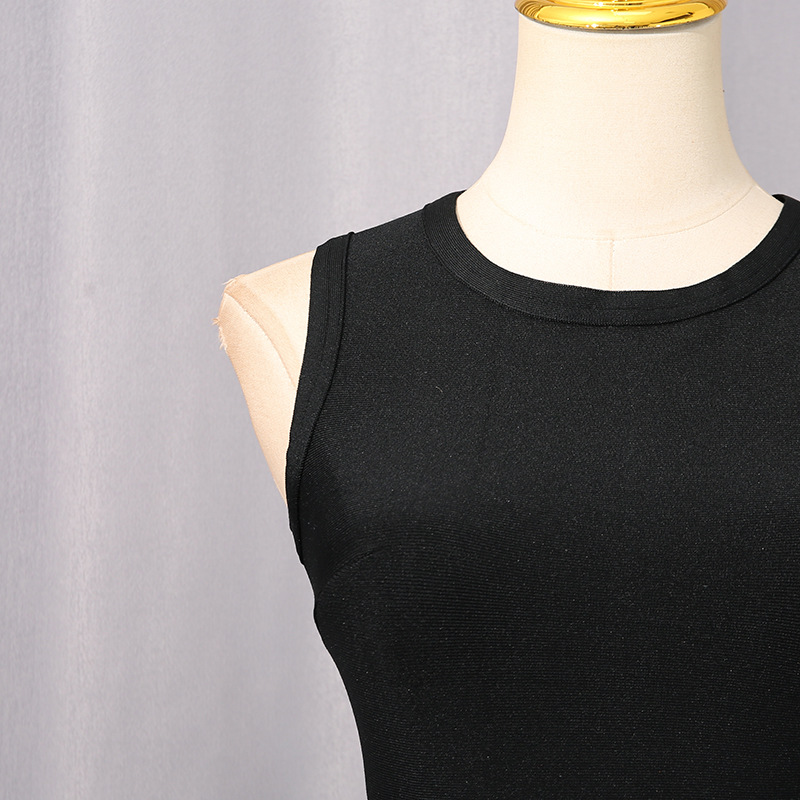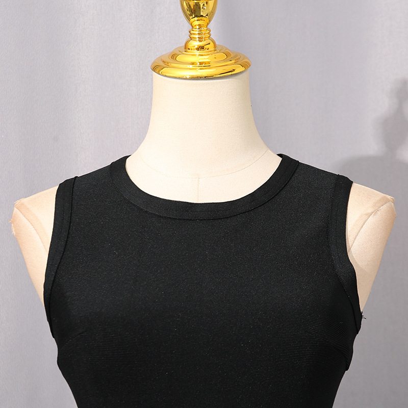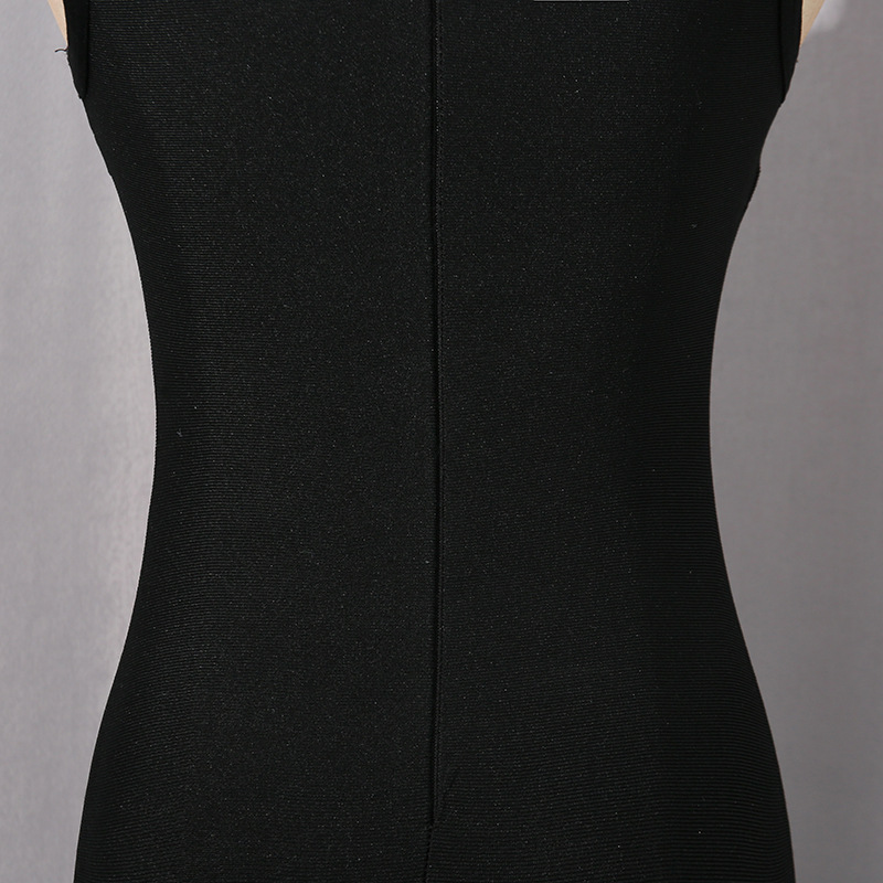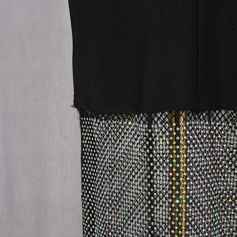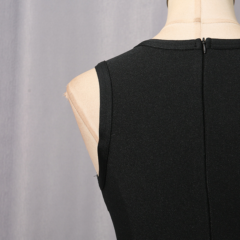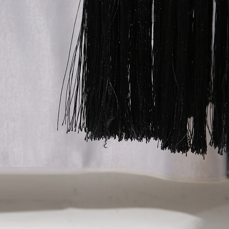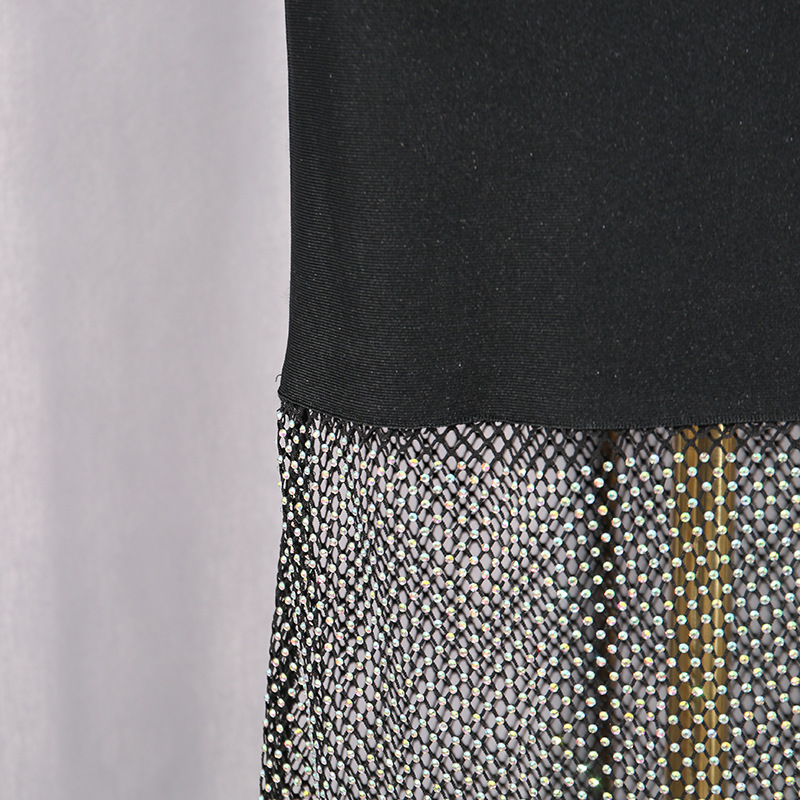 Pure Black Phantom round Neck Sleeveless Waist Slimming Maxi Dress Autumn Hollow Out Cutout Jeweled See through Tassel Dress