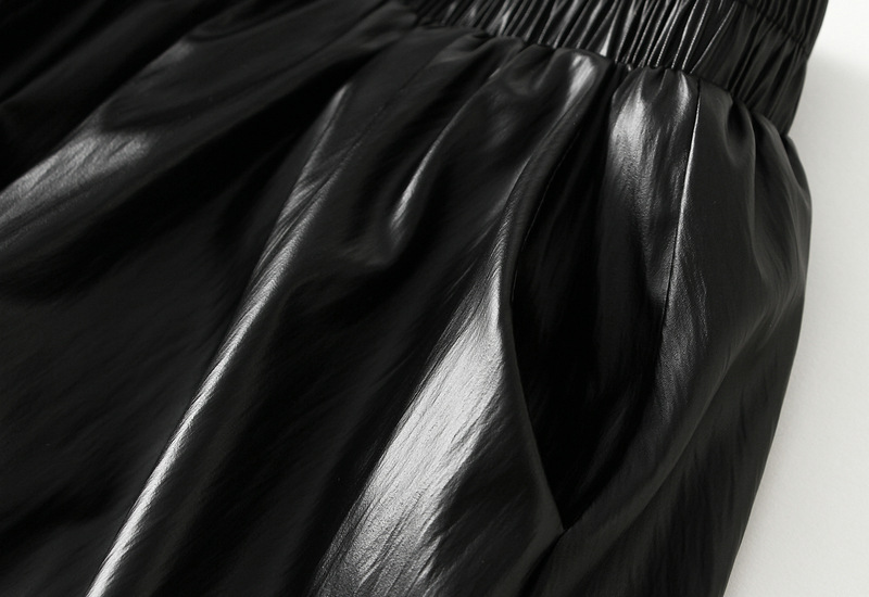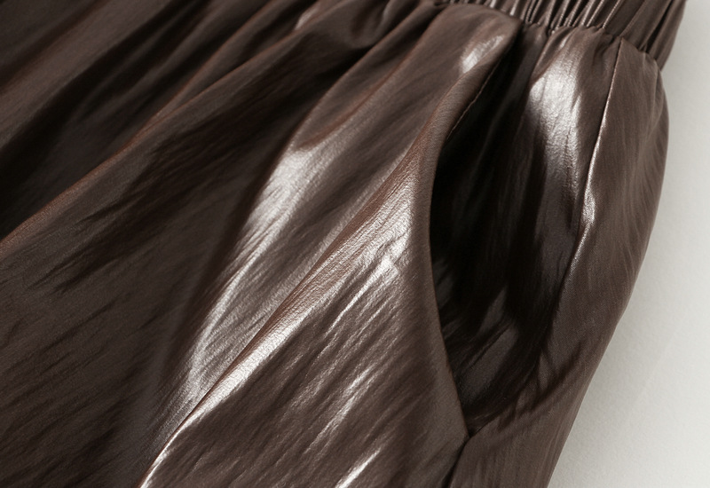 Retro Loose Faux Leather Bud Lantern Dress Women Autumn Lazy Casual A line Half Length Balloon Skirt