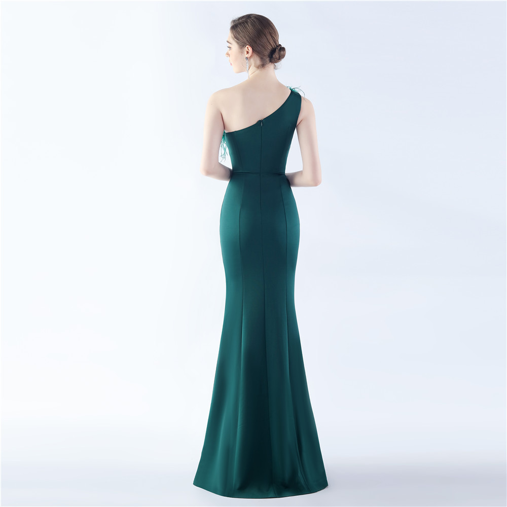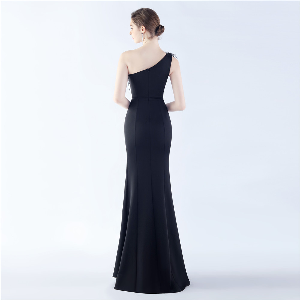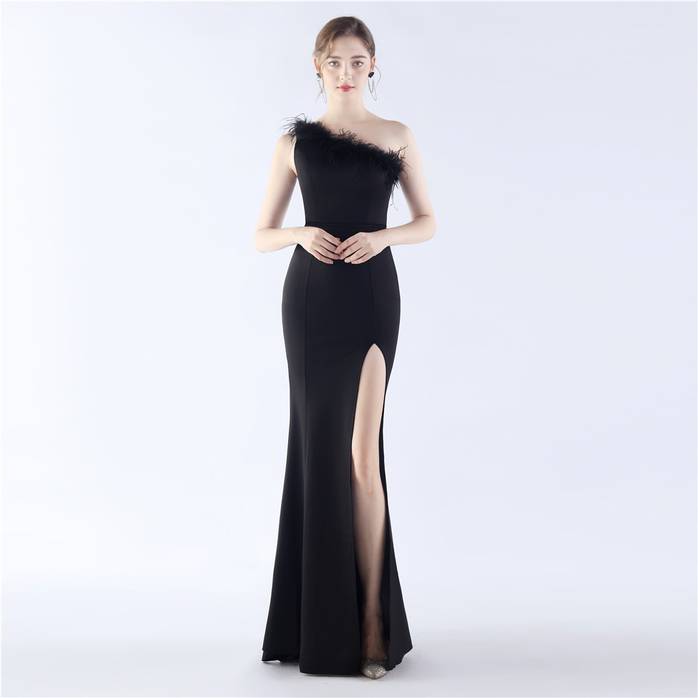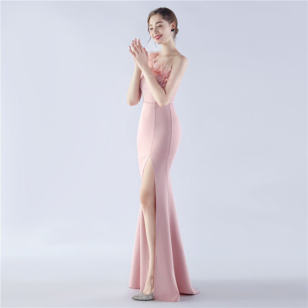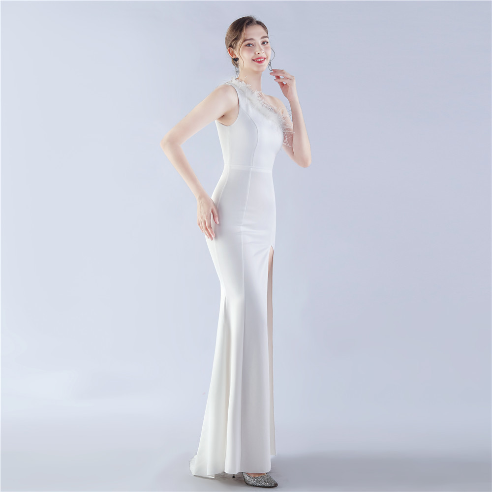 Satin Craft Order Ostrich Feather Dinner Exhibition Wedding Evening Dress