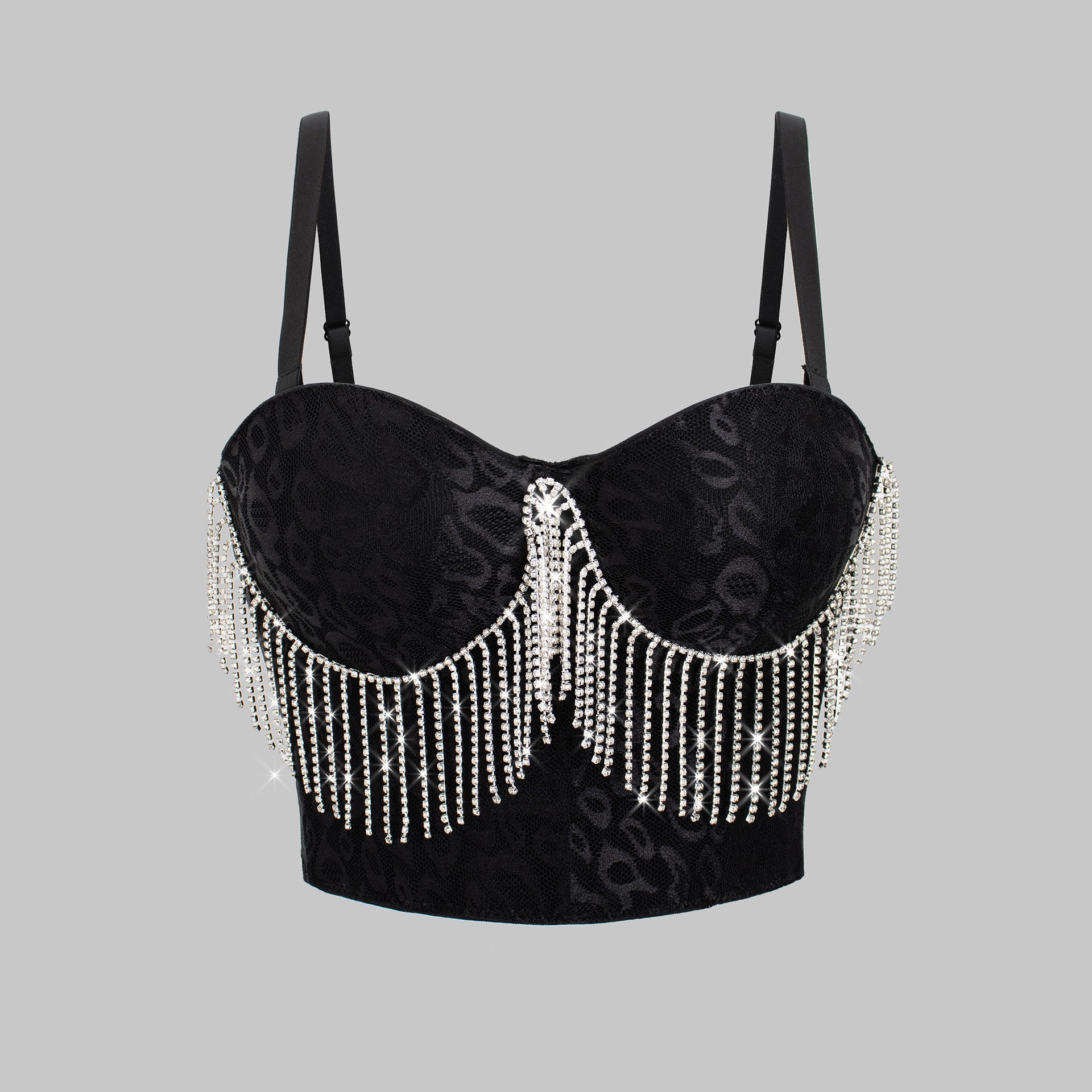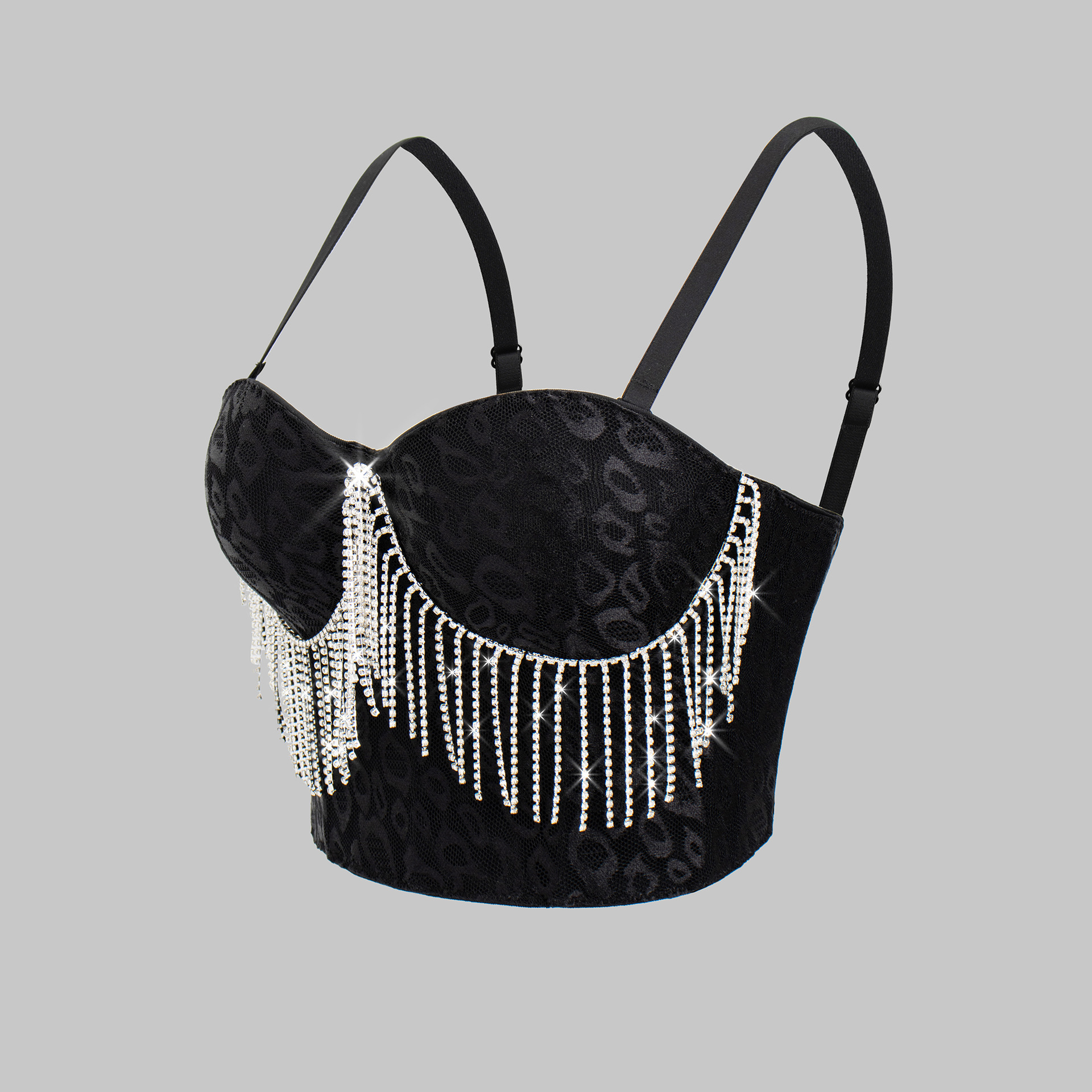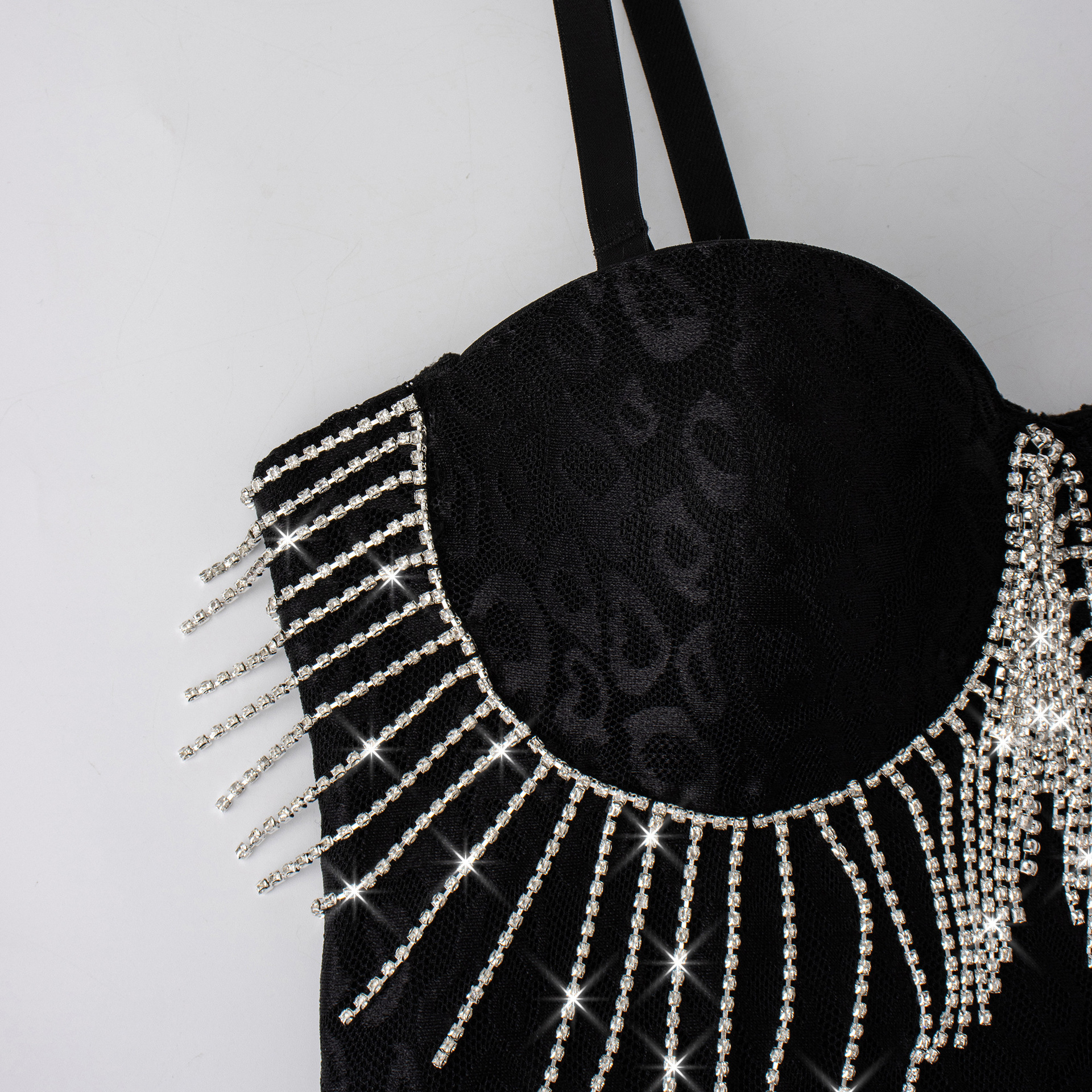 Sexy Belly Dance Costume Diamond Embedded Tassel Suspender Vest Outer Wear Slimming Boning Corset Wrapped Chest